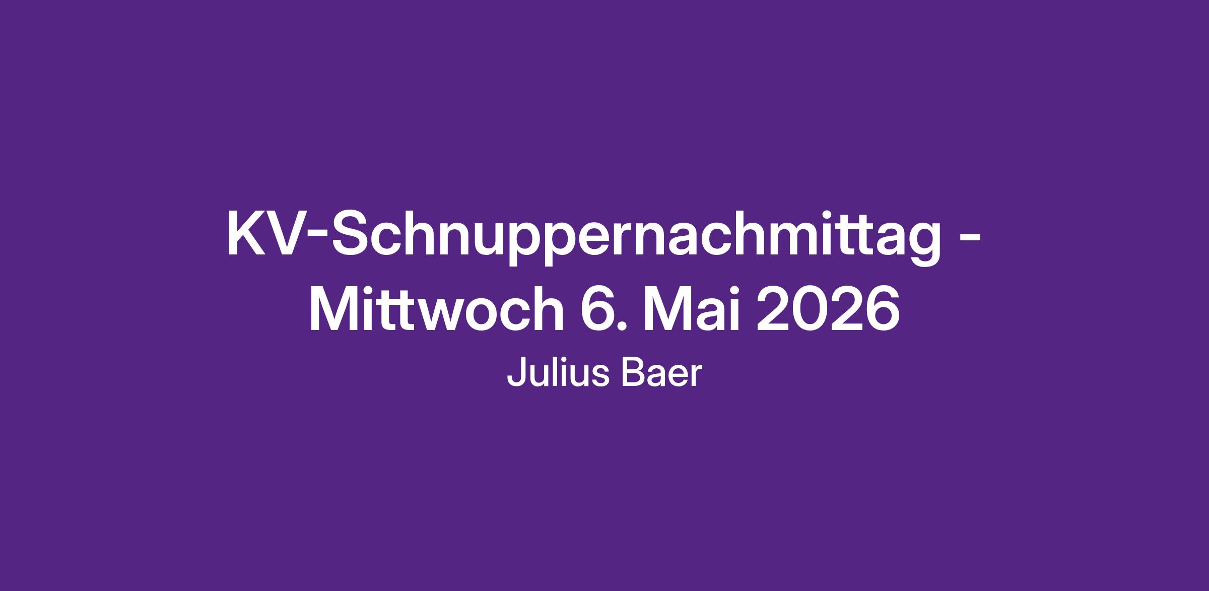 Es ist nicht einfach, sich für einen künftigen Beruf zu entscheiden. Deshalb erfährst du an unseren KV-Schnuppernachmittagen viel über die KV-Lehre und den spannenden Lehrablauf bei Julius Bär. Unsere Lernenden und Praxisausbilder/innen berichten von ihrem Alltag, ihren Highlights und stehen dir für deine Fragen rund um die Lehre zur Verfügung. Während diesem halben Tag bekommst du einen umfassenden Einblick in die Welt einer internationalen Privatbank.