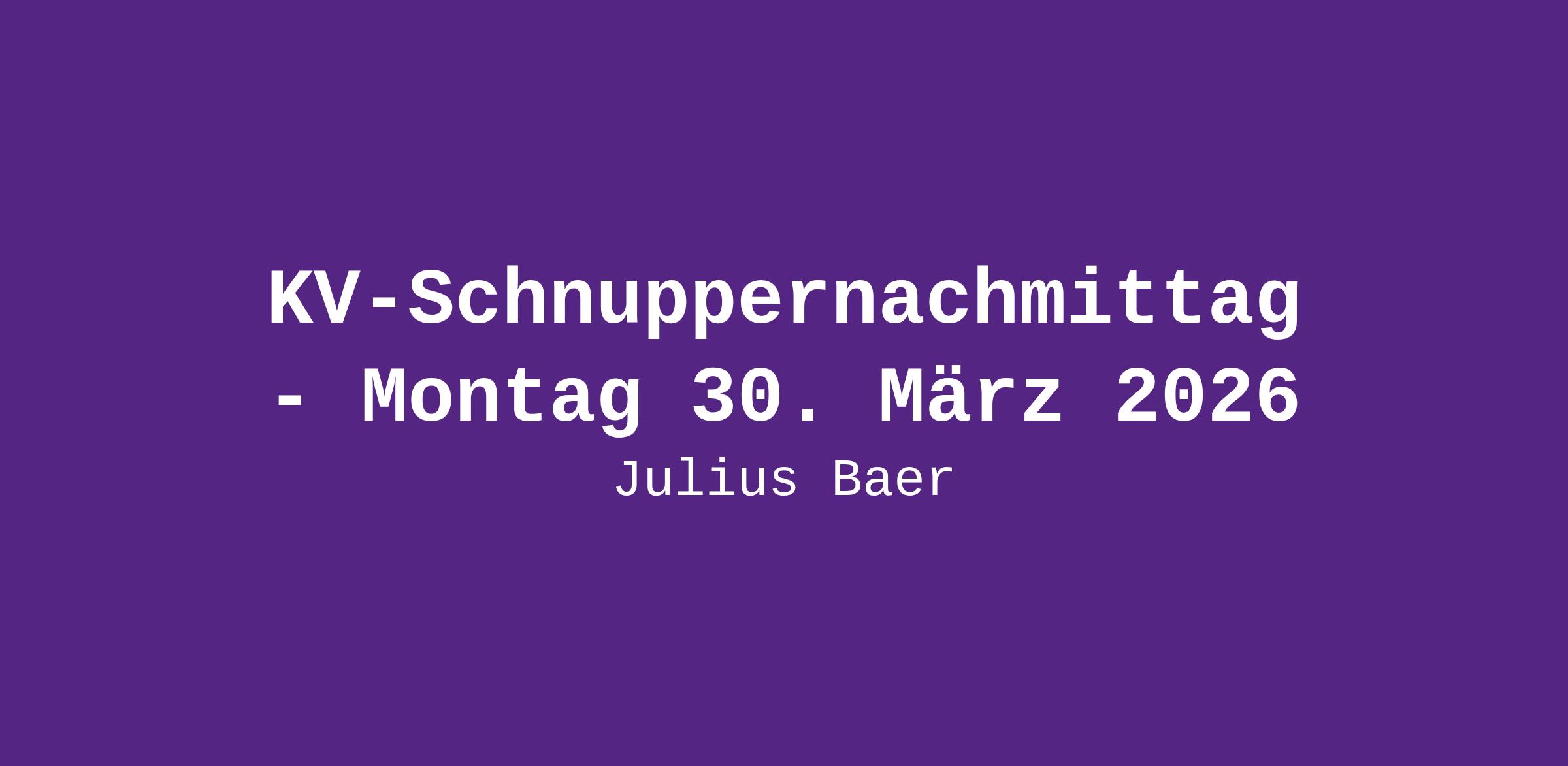 Es ist nicht einfach, sich für einen künftigen Beruf zu entscheiden. Deshalb erfährst du an unseren KV-Schnuppernachmittagen viel über die KV-Lehre und den spannenden Lehrablauf bei Julius Bär. Unsere Lernenden und Praxisausbilder/innen berichten von ihrem Alltag, ihren Highlights und stehen dir für deine Fragen rund um die Lehre zur Verfügung. Während diesem halben Tag bekommst du einen umfassenden Einblick in die Welt einer internationalen Privatbank.