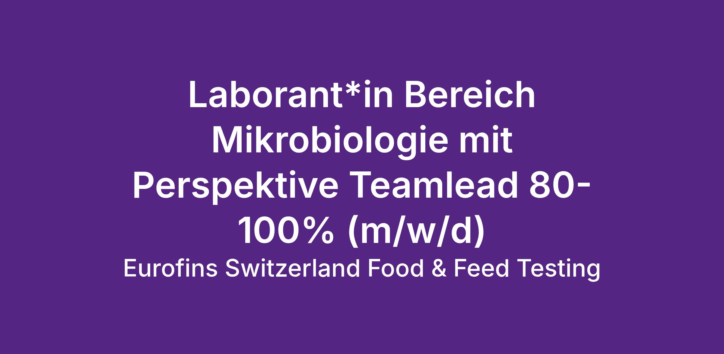 Zur Unterstützung unseres Teams suchen wir Dich per sofort oder nach Vereinbarung als Laborant*in Bereich Mikrobiologie mit Perspektive Teamlead  80-100% (m/w/d)