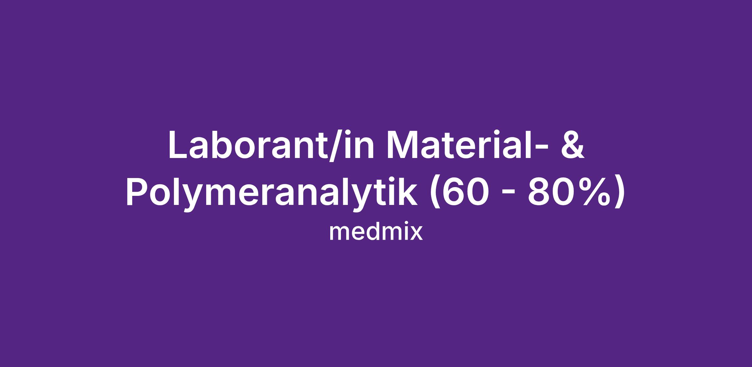 Wir suchen für unser Team im analytischen Labor eine/n Mitarbeiter/in als tatkräftige Unterstützung. Dieser Job ist in Teilzeit mit einer Auslastung von 60 - 80%. Wir freuen uns auf Ihre Bewerbung!