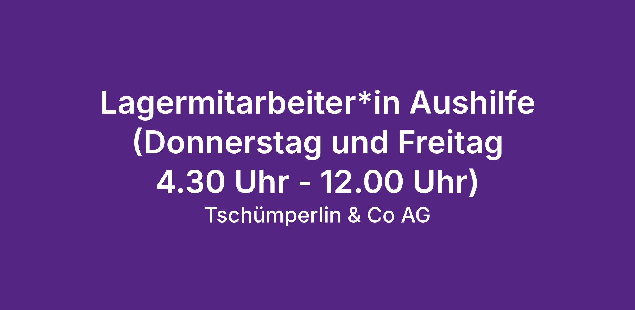 Möchten Sie Teil eines dynamischen Teams werden und in einem spannenden Umfeld arbeiten? Bei Tschümperlin Schuhe + Sport suchen wir eine motivierte Aushilfe als Lagermitarbeiter*in, die unser Team unterstützt. Die Arbeitszeiten sind donnerstags und freitags von 4:30 bis 12:00 Uhr. Sie werden in unserem Lager in Brunnen SZ tätig sein und Aufgaben übernehmen, um den reibungslosen Ablauf unserer Logistikprozesse zu gewährleisten.