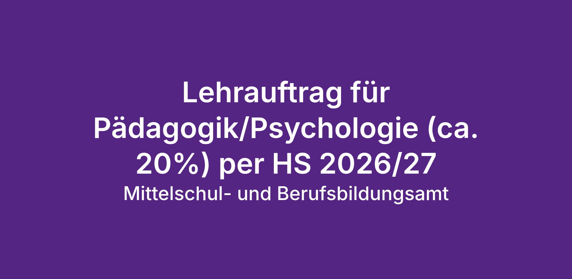 Lehrauftrag für Pädagogik/Psychologie (ca. 20%) per HS 2026/27