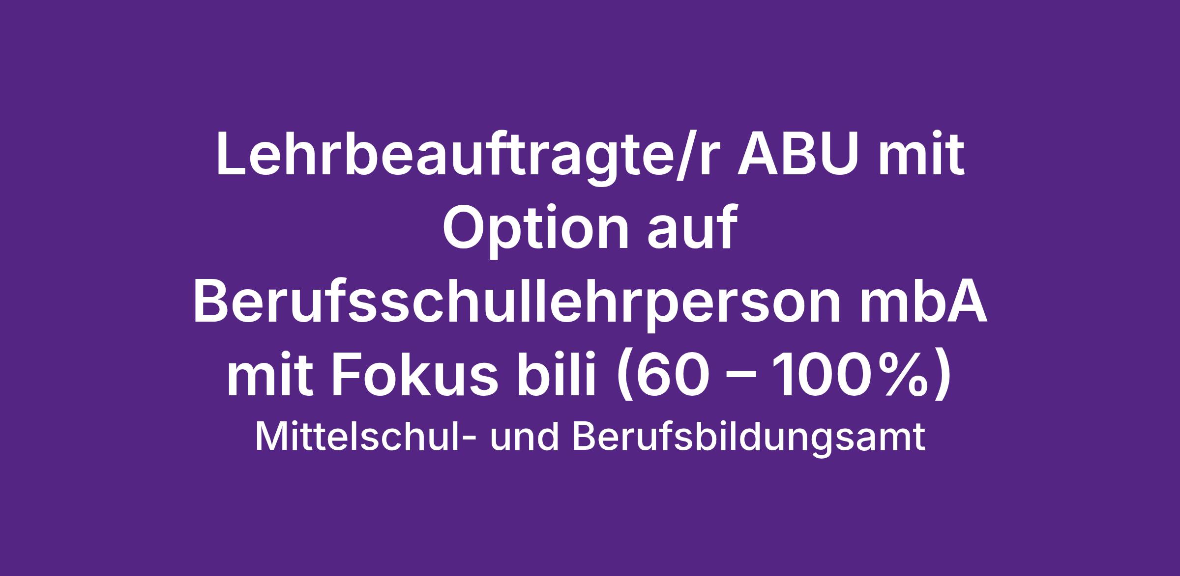 Lehrbeauftragte/r ABU mit Option auf Berufsschullehrperson mbA mit Fokus bili (60 – 100%)
