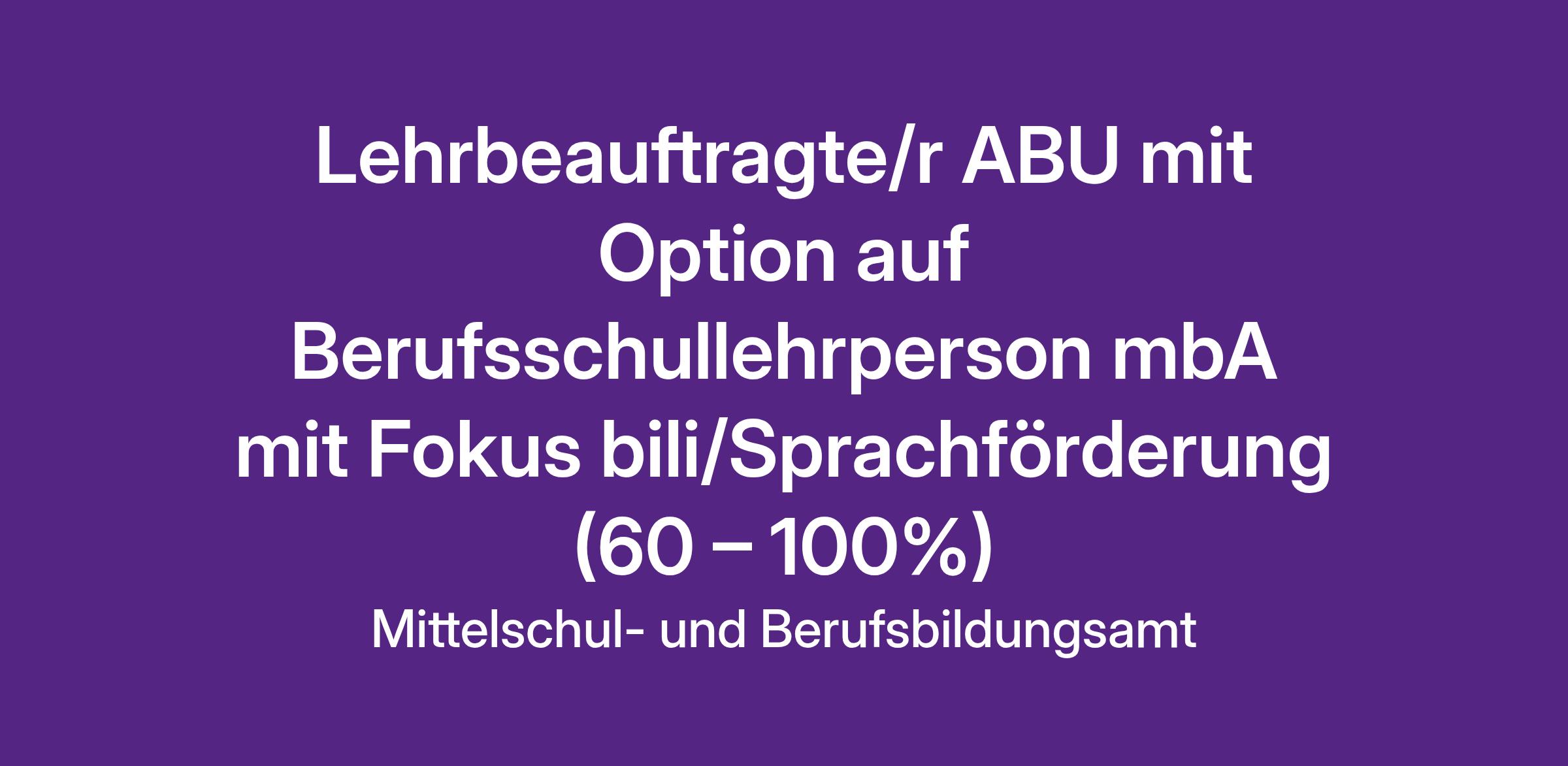 Lehrbeauftragte/r ABU mit Option auf Berufsschullehrperson mbA mit Fokus bili/Sprachförderung (60 – 100%)