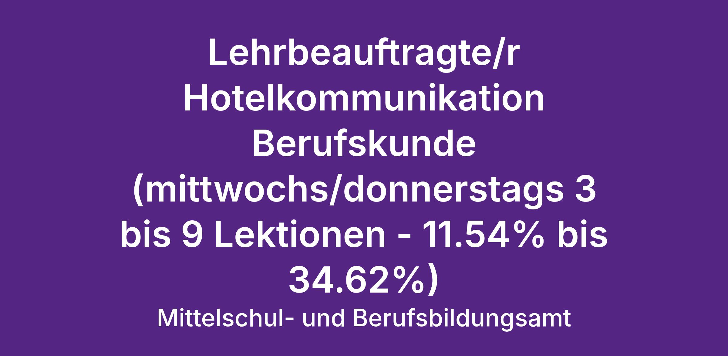 Lehrbeauftragte/r Hotelkommunikation Berufskunde (mittwochs/donnerstags 3 bis 9 Lektionen - 11.54% bis 34.62%)