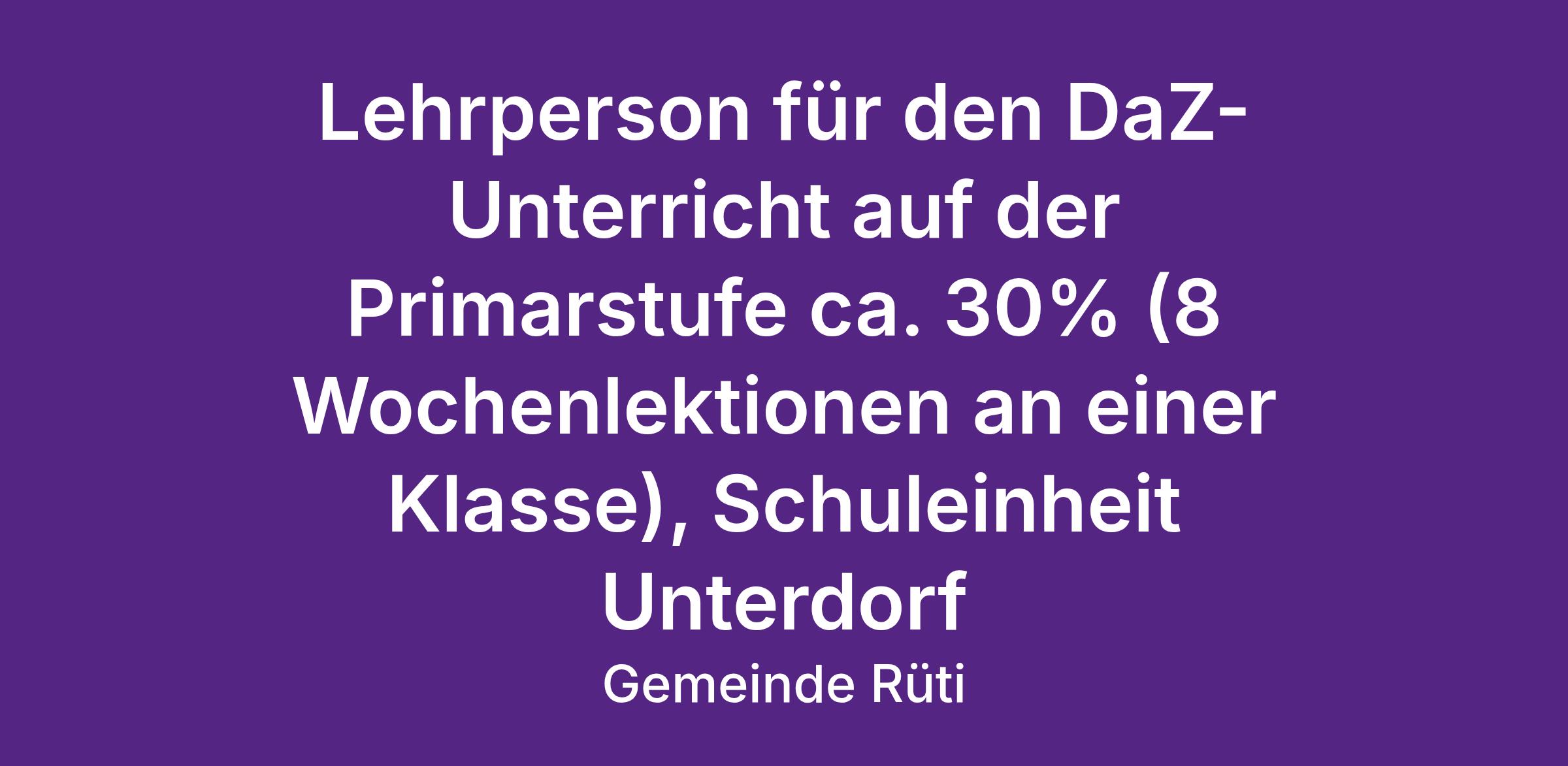 Lehrperson für den DaZ-Unterricht auf der Primarstufe ca. 30% (8 Wochenlektionen an einer Klasse), Schuleinheit Unterdorf