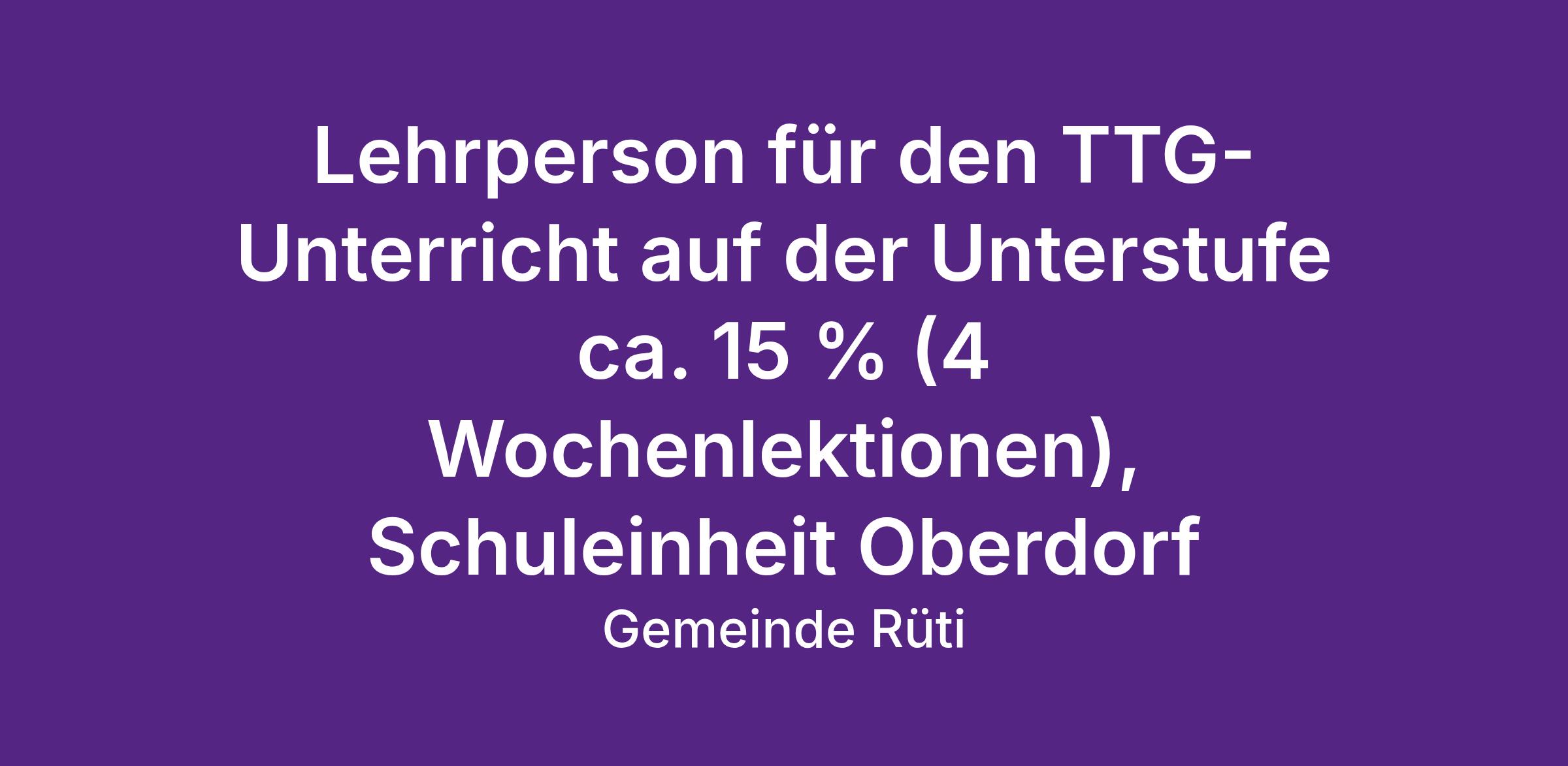 Lehrperson für den TTG-Unterricht auf der Unterstufe ca. 15 % (4 Wochenlektionen), Schuleinheit Oberdorf