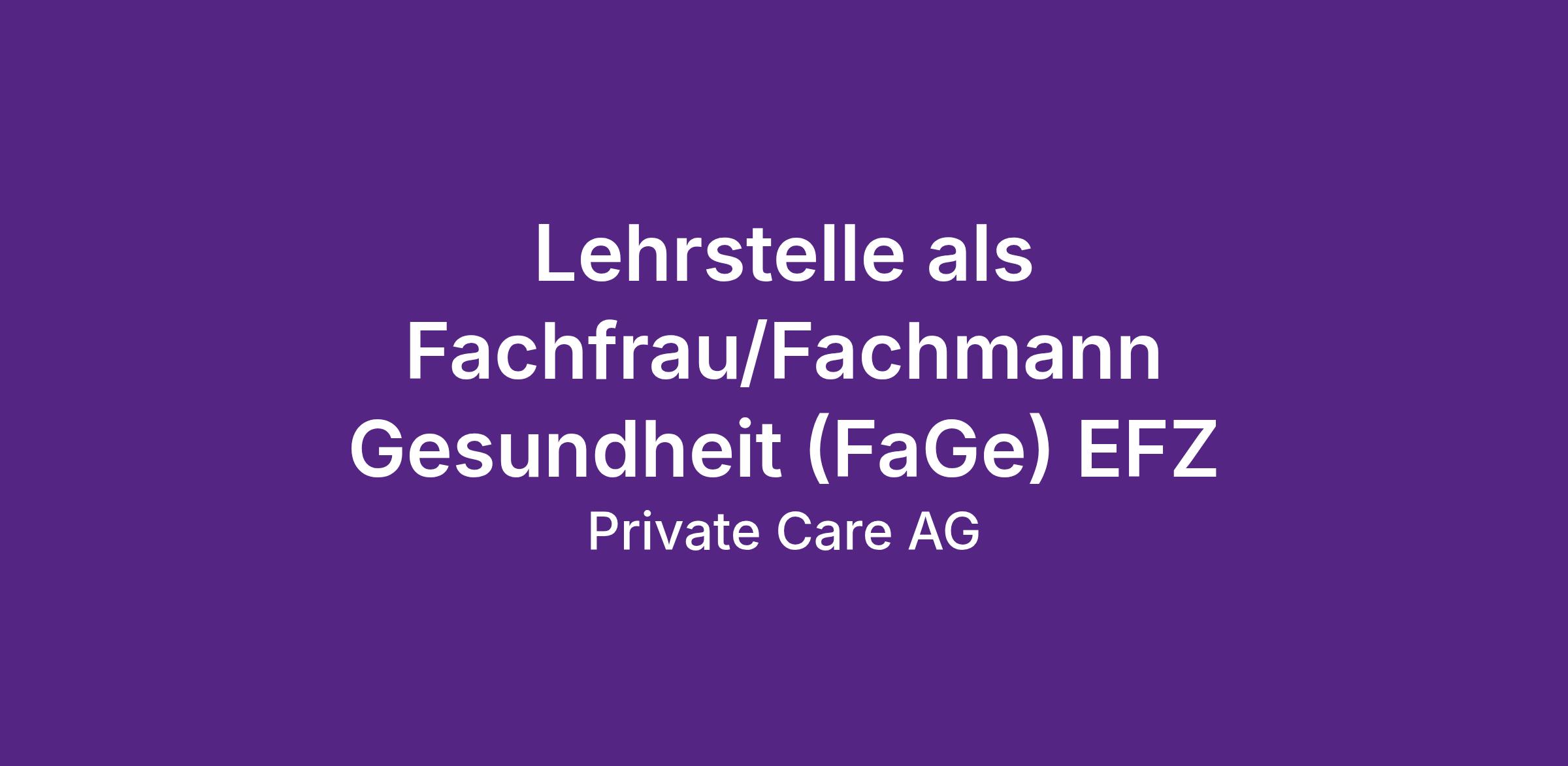 Die private Care AG ist ein dynamisches, zukunftsorientiertes Unternehmen, welches private Pflegedienstleistungen in den Kantonen Aargau, Zürich, Solothurn und Schaffhausen anbietet sowie spezialisierte Fachkräfte aus Pflege und Gesundheitswesen in der deutschsprachigen Schweiz vermittelt.