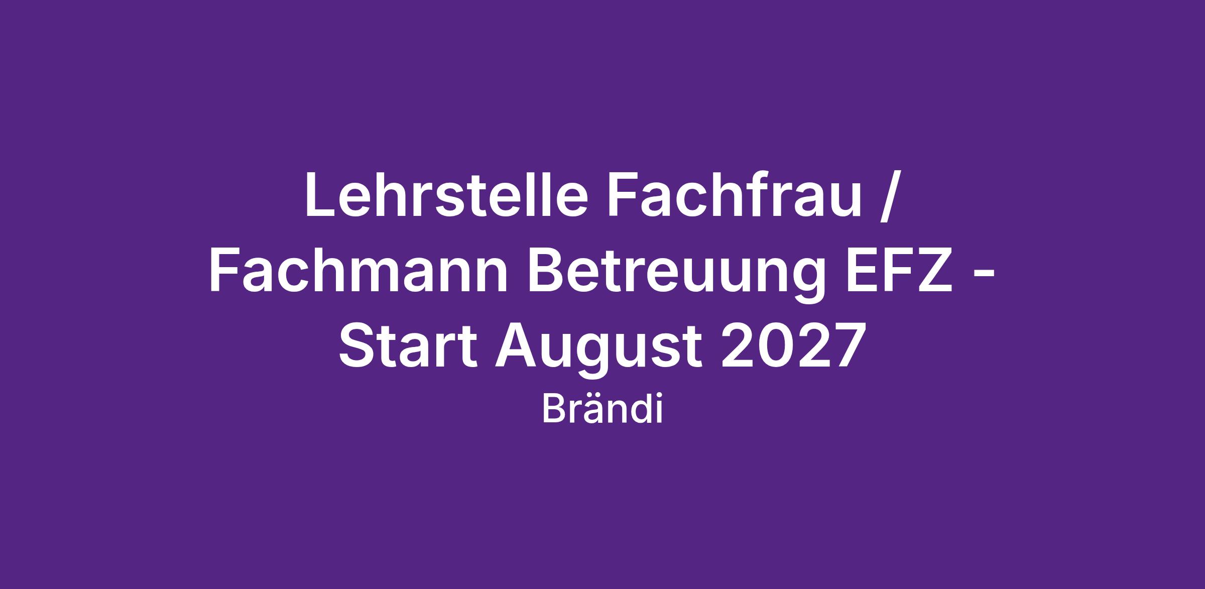 Lehrstelle Fachfrau / Fachmann Betreuung EFZ - Start August 2027