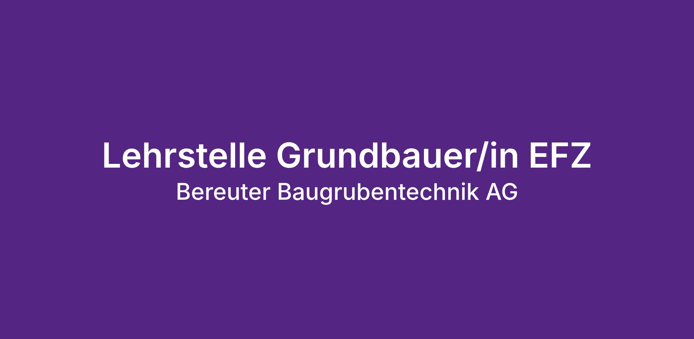 Wir bieten eine abwechslungsreiche und spannende Lehrstelle als Grundbauer/in EFZ. Wenn dich dieser Lehrberuf interessiert, dann bist du bei uns, der Bereuter Gruppe, genau richtig! Wir suchen motivierte und begeisterte Talente. Starte deine Zukunft bei uns und bewirb dich noch heute bei uns um eine Lehrstelle.