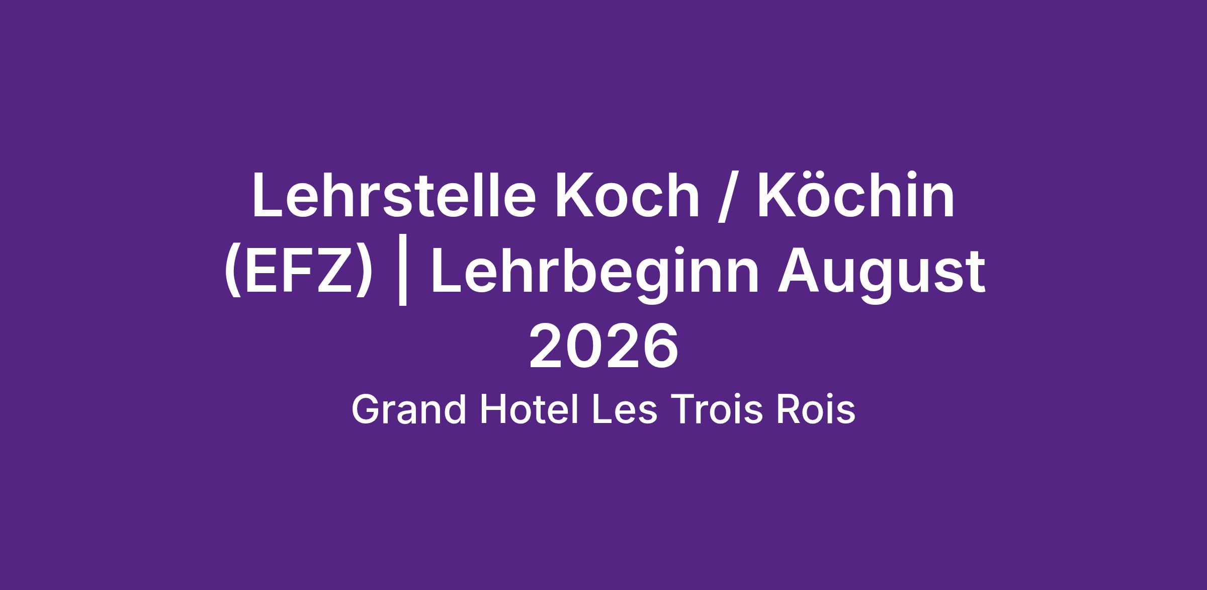 Für das Ausbildungsjahr 2026 suchen wir engagierte Talente, die Freude am Kochen haben und die hohe Kunst der gehobenen Gastronomie erlernen möchten. Werden Sie Teil unseres Teams und entwickeln Sie sich zum Koch/zur Köchin EFZ (m/w/d) in einem erstklassigen Umfeld.