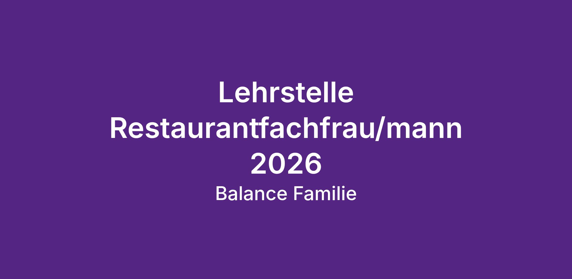 Lehrstelle Restaurantfachfrau/mann 2026