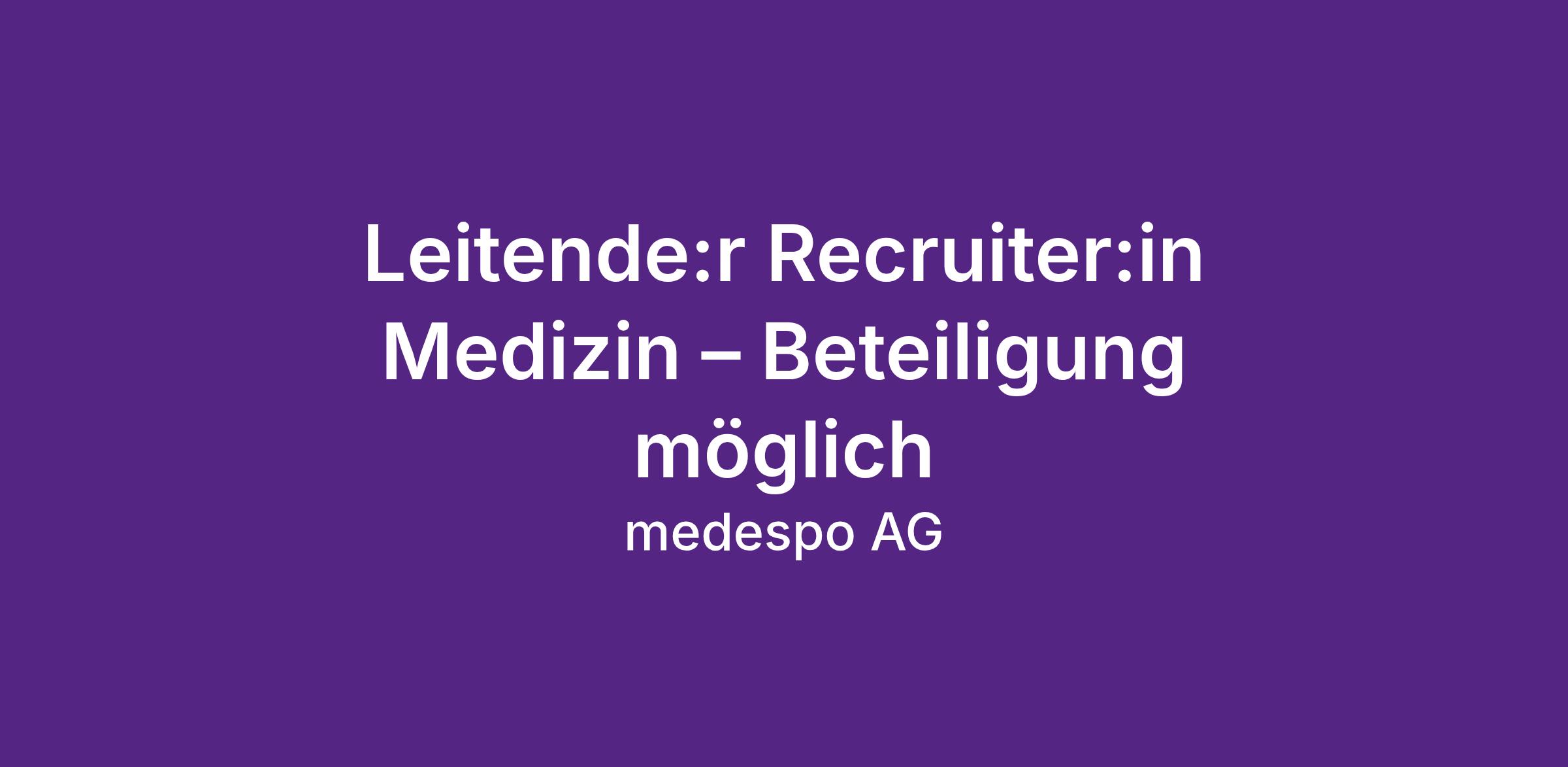 Leitende:r Recruiter:in Medizin – Beteiligung möglich