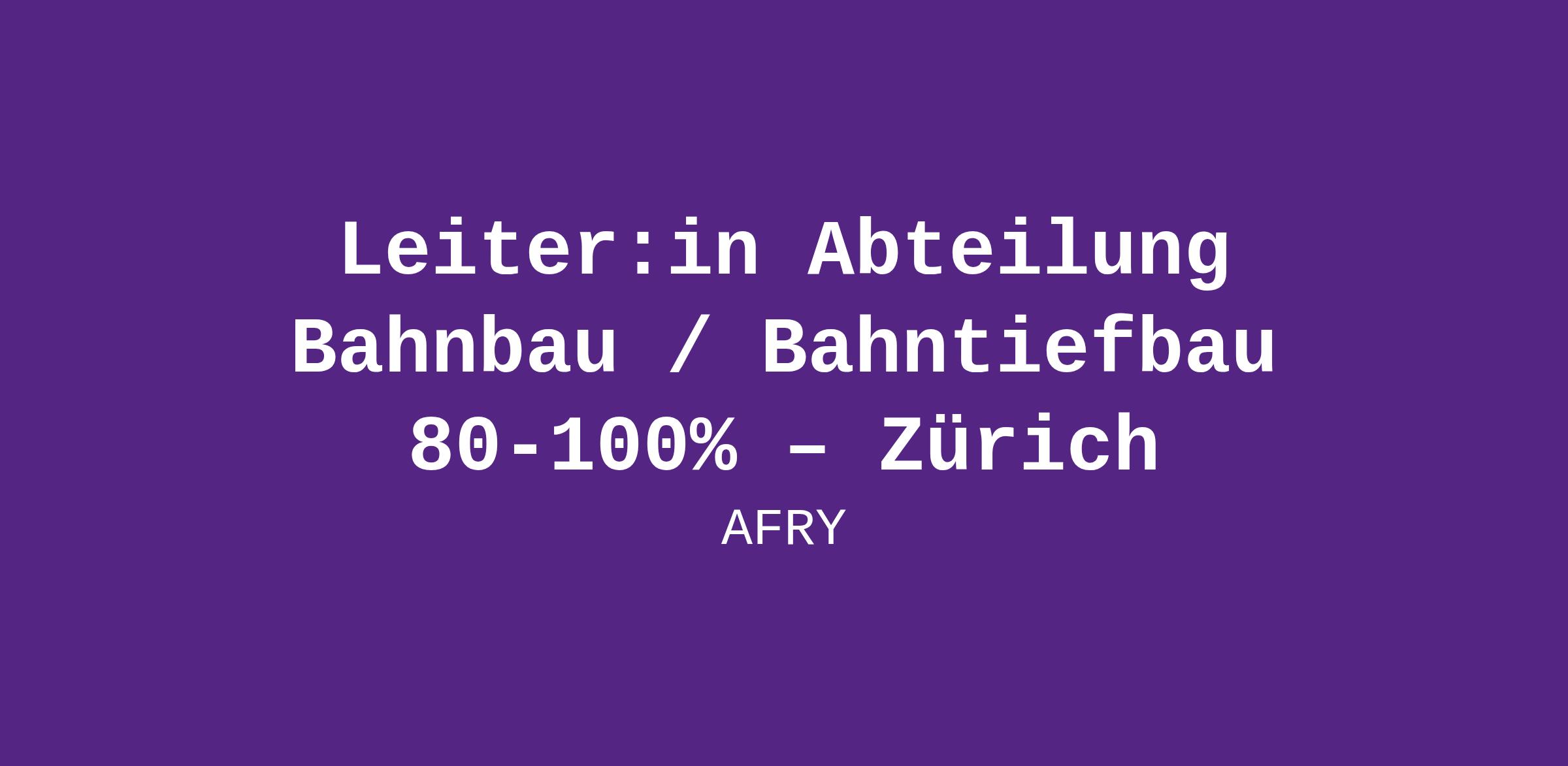 LEITER:IN ABTEILUNG BAHNBAU / BAHNTIEFBAU 80-100% – ZÜRICH
