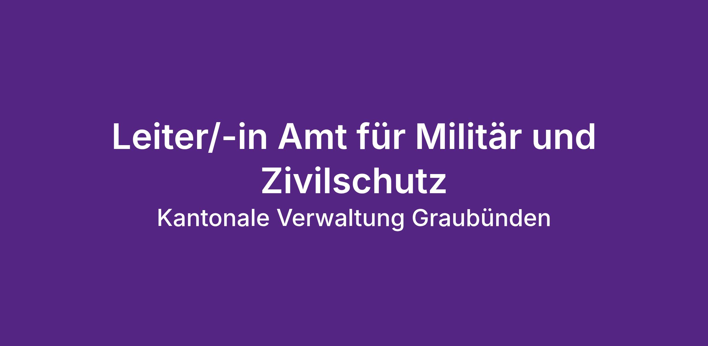 Das Departement für Justiz, Sicherheit und Gesundheit umfasst acht Dienststellen, darunter das Amt für Militär und Zivilschutz Graubünden. Als dessen Leitung unterstehen Sie direkt dem Departementsvorsteher und verantworten Schutzmassnahmen, Katastrophenbewältigung sowie die Führung und Ausbildung von Führungsstäben. Sie koordinieren die Vorsorgeplanung im Bevölkerungsschutz, leiten die Bereiche Zivilschutz Bauten und Einsatz/Ausbildung und sind verantwortlich für die dem Kanton übertragenen militärischen Aufgaben. Dabei stehen Sie in Ihrem Aufgabengebiet in intensivem Kontakt mit Bundesämtern, kantonalen Dienststellen, Gemeindebehörden und Partnerorganisationen des Bevölkerungsschutzes. Zusammen mit Ihren Mitarbeitenden sorgen Sie für ein lösungsorientiertes und wertschätzendes Arbeitsklima.