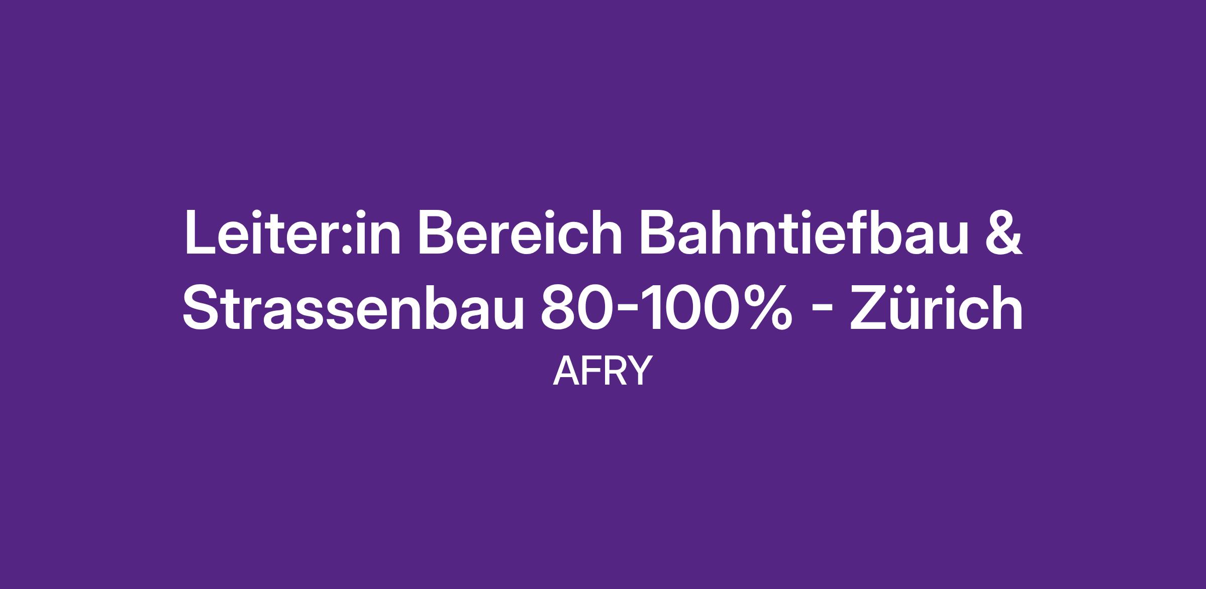 LEITER:IN BEREICH BAHNTIEFBAU & STRASSENBAU 80-100% – ZÜRICH