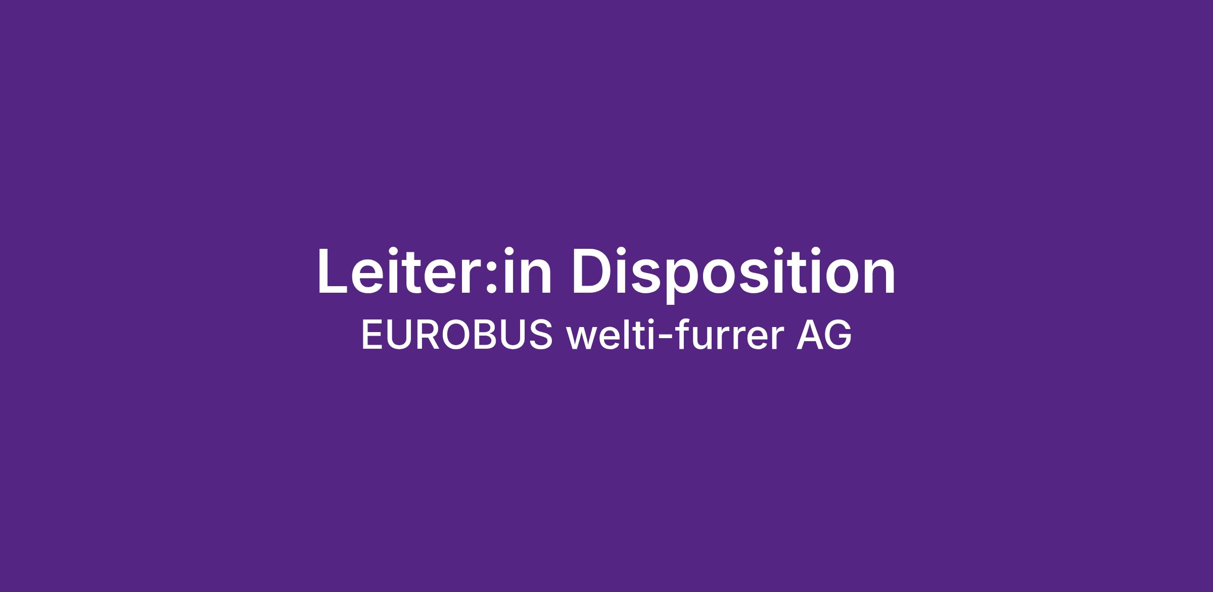 Im Rahmen einer Nachfolgeregelung (Pensionierung) suchen wir für unseren Standort in Bassersdorf (ZH) eine engagierte und organisatorisch starke Persönlichkeit als Leiter:in Disposition.