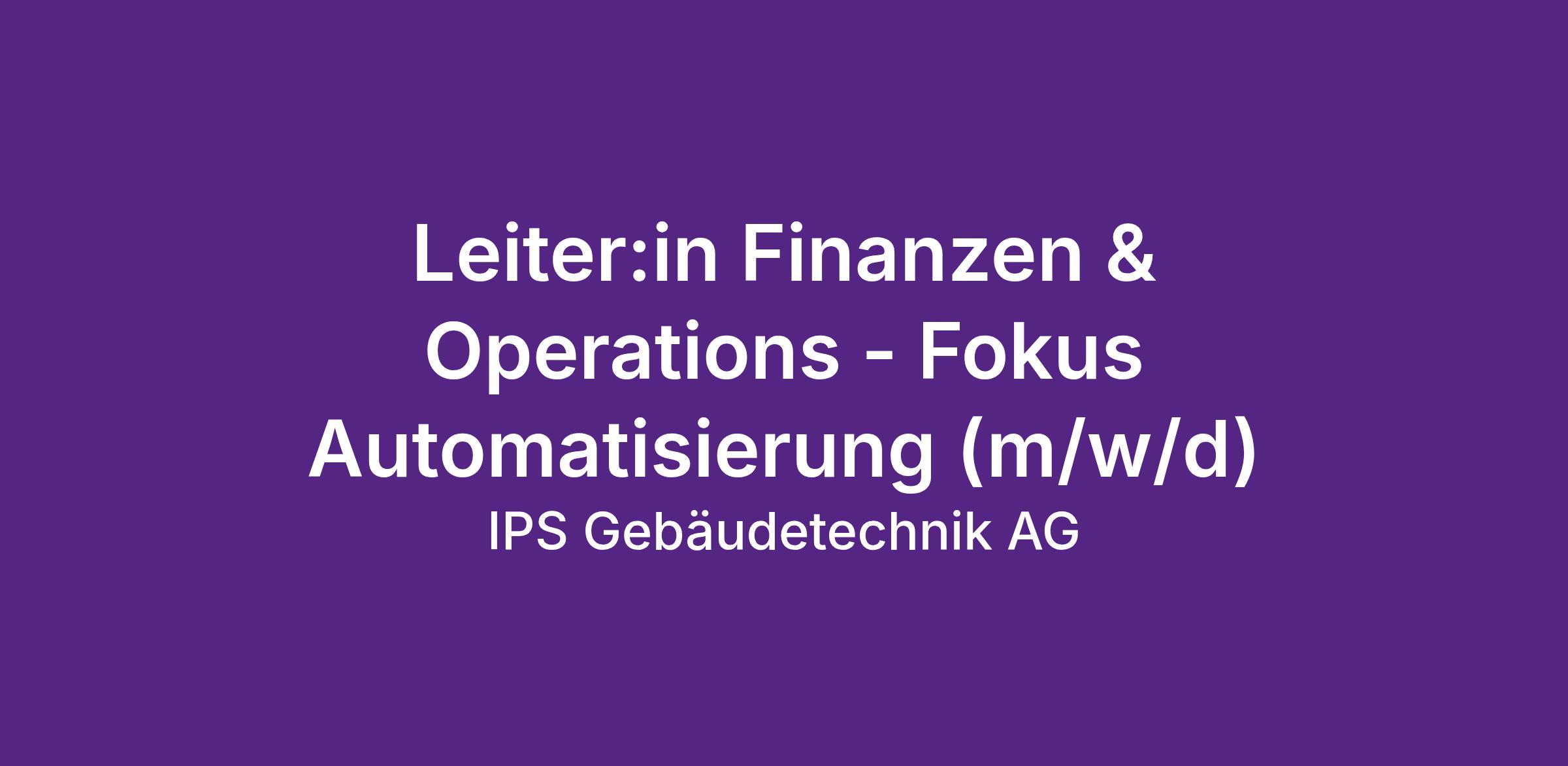 Die IPS-Gruppe steht an einem spannenden Wendepunkt: Integriert in eine wachsende europäische Allianz, baut sie ihre operativen und finanziellen Strukturen für organisches und anorganisches Wachstum professionell aus. Als Leiter/in Finanzen & Operations bist du die zentrale Person, die das operative Finance- und Controlling-Rückgrat ausbaut und die operativen Prozesse skalierbar automatisierst.