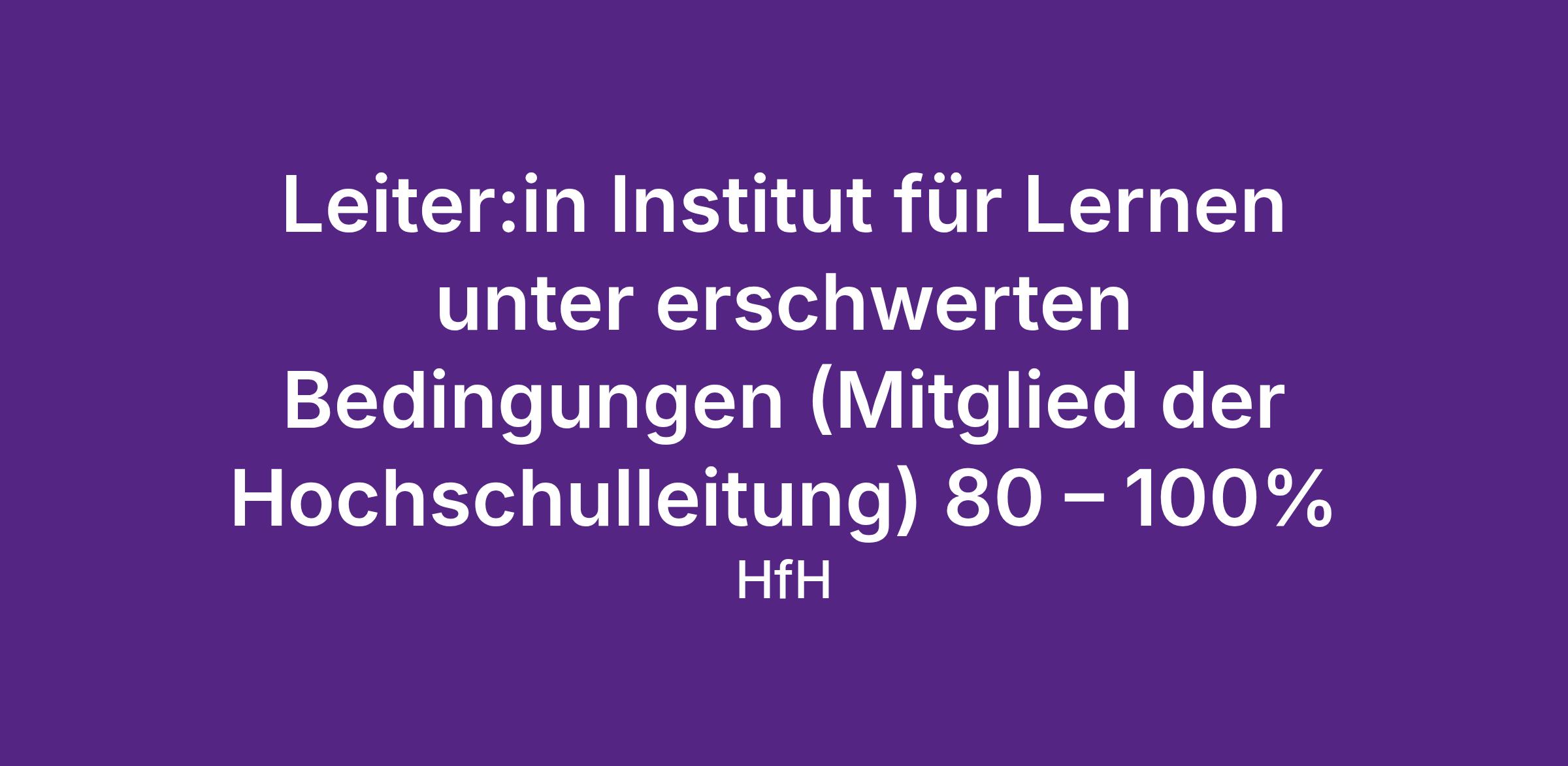 Für die Leitung des Instituts für Lernen unter erschwerten Bedingungen (ILEB) suchen wir per 1. Juli 2026 oder nach Vereinbarung eine ausgewiesene Expertin bzw. einen ausgewiesenen Experten, die/der Freude daran hat, das Institut gemeinsam mit den Kolleginnen und Kollegen fachlich weiterzuentwickeln, strategisch zu positionieren und innovativ zu gestalten.