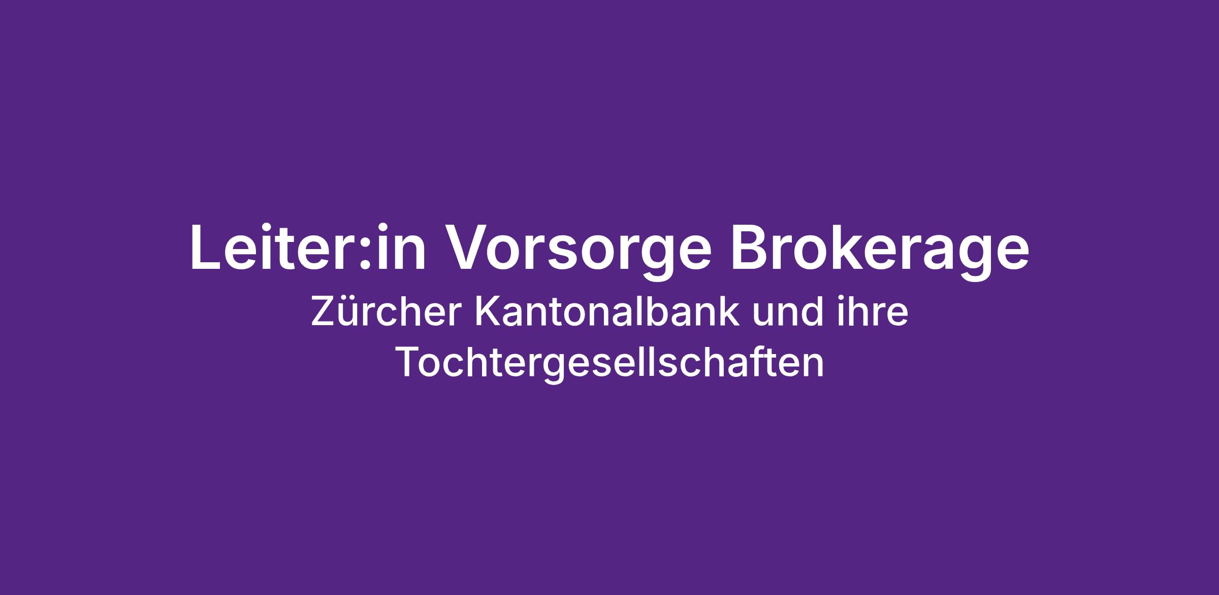 Möchtest du das Vorsorge-Brokergeschäft gemeinsam mit deinem Team bei der führenden Bank im Wirtschaftsraum Zürich vorantreiben? Dann freuen wir uns auf deine Bewerbung!