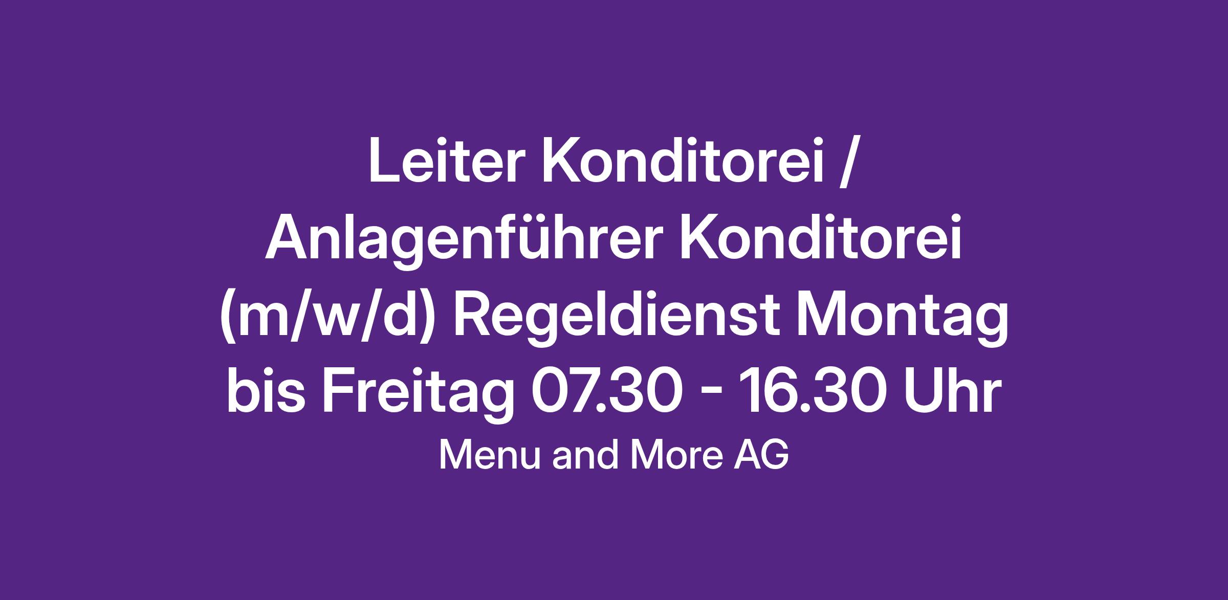 Leiter Konditorei / Anlagenführer Konditorei (m/w/d) Regeldienst Montag bis Freitag 07.30 - 16.30 Uhr