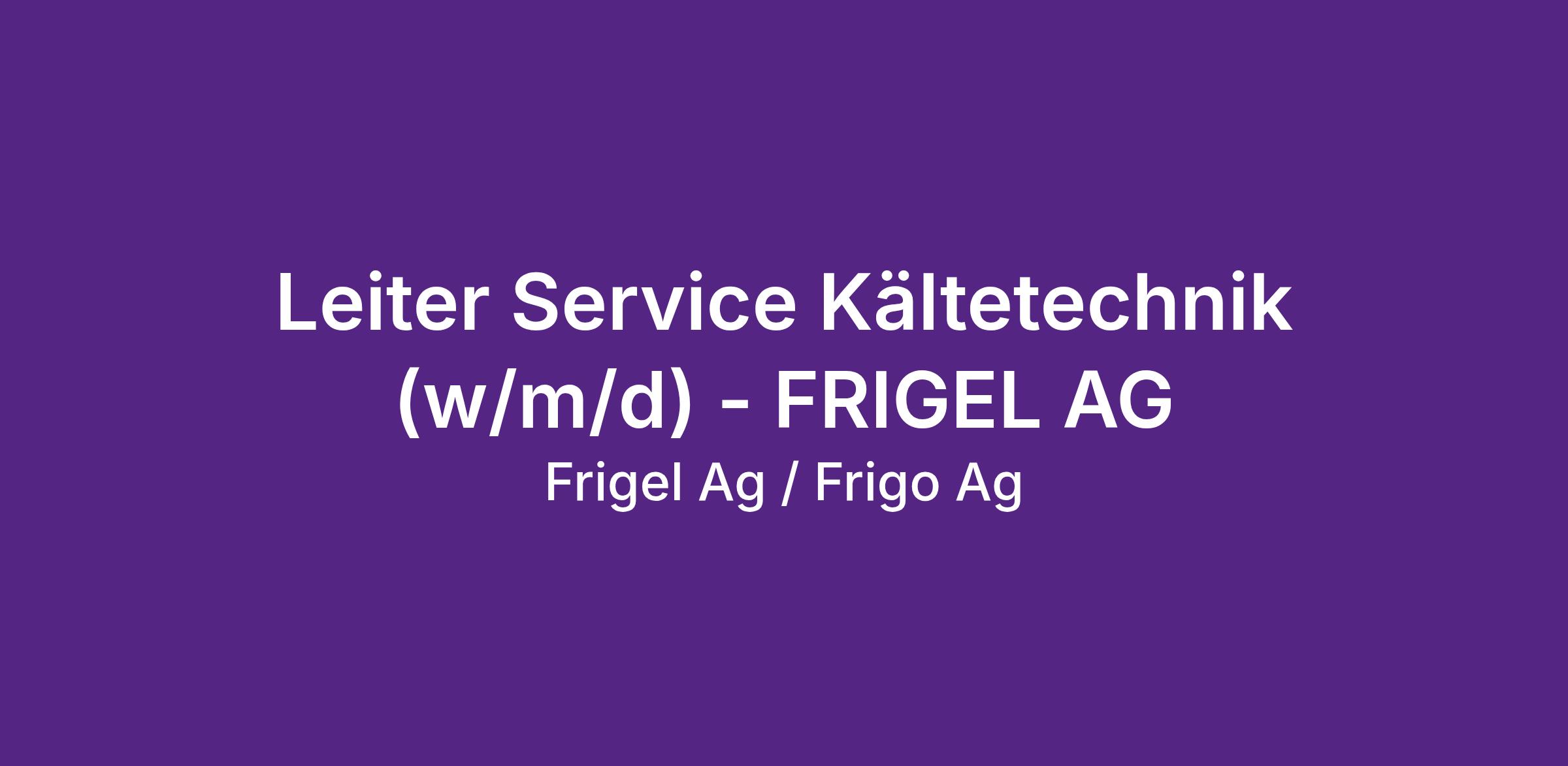 Leiter Service Kältetechnik (w/m/d) - FRIGEL AG