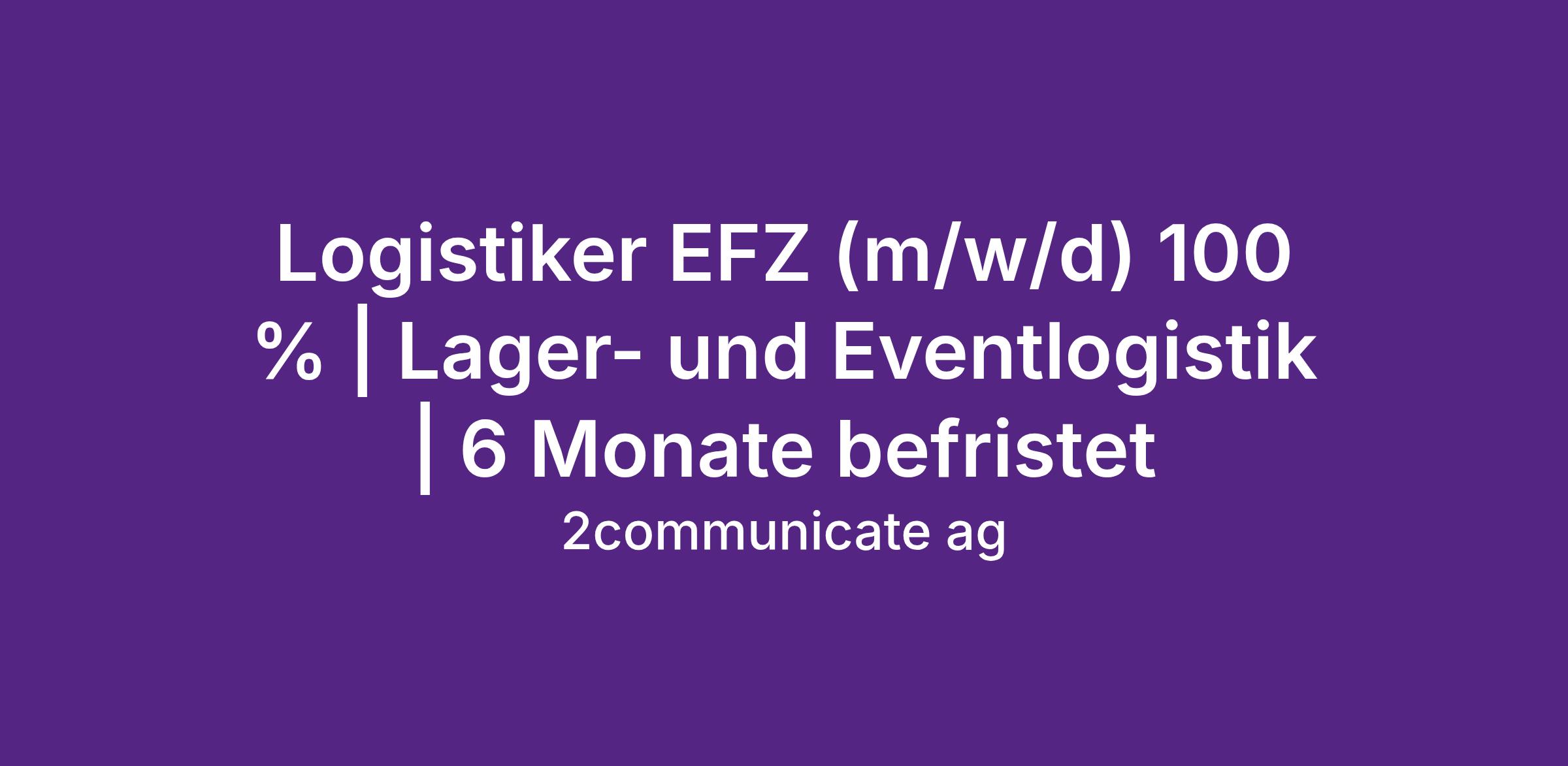 Logistiker EFZ (m/w/d) 100 % | Lager- und Eventlogistik | 6 Monate befristet