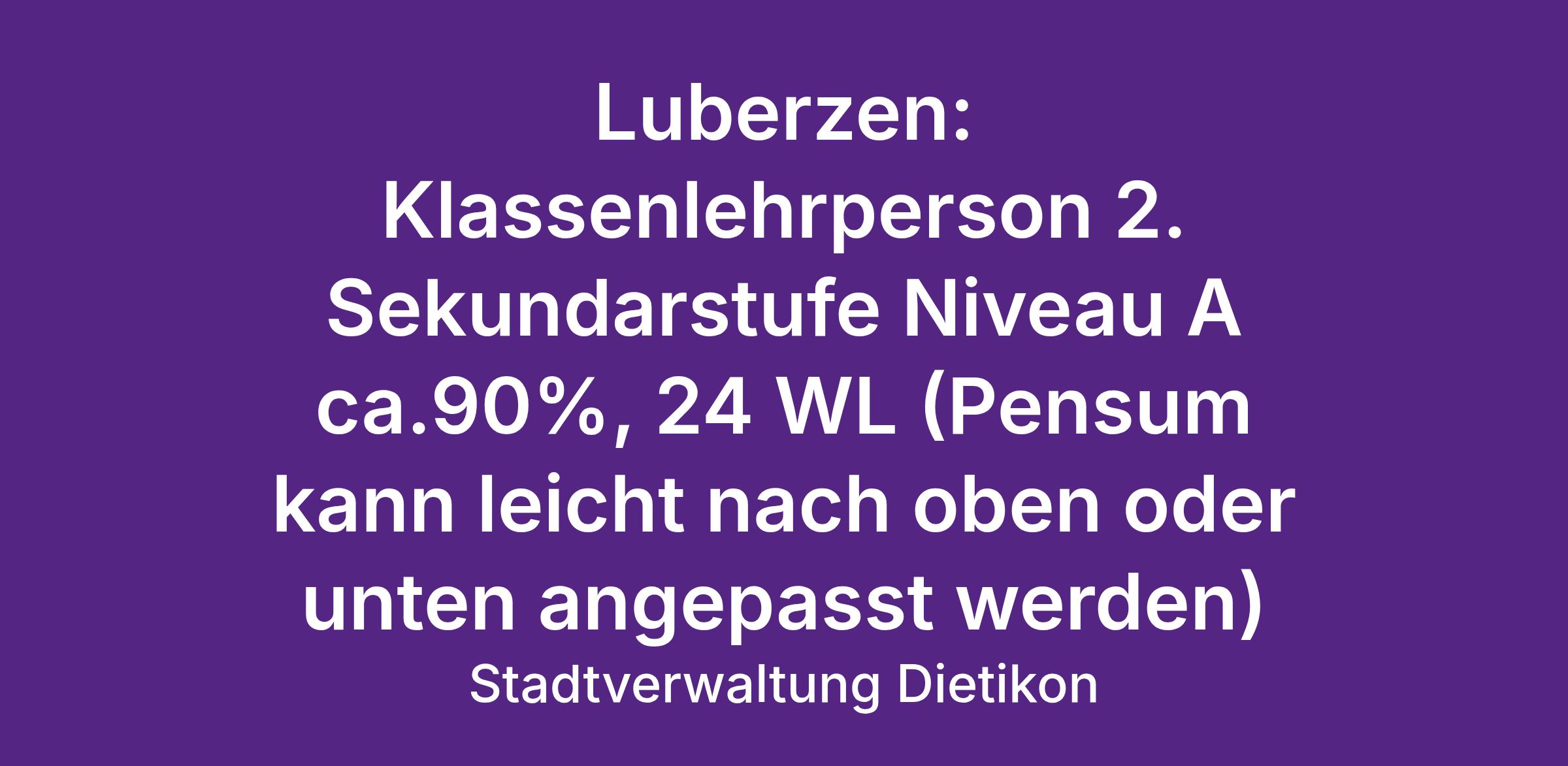 Luberzen: Klassenlehrperson 2. Sekundarstufe Niveau A ca.90%, 24 WL (Pensum kann leicht nach oben oder unten angepasst werden)