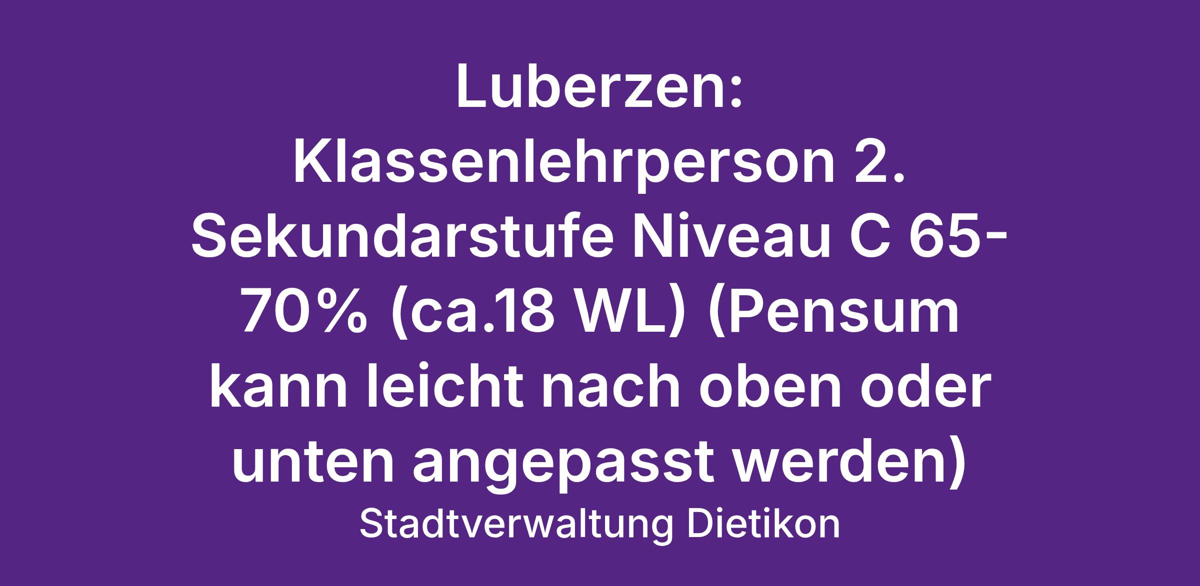 Luberzen: Klassenlehrperson 2. Sekundarstufe Niveau C 65-70% (ca.18 WL) (Pensum kann leicht nach oben oder unten angepasst werden)