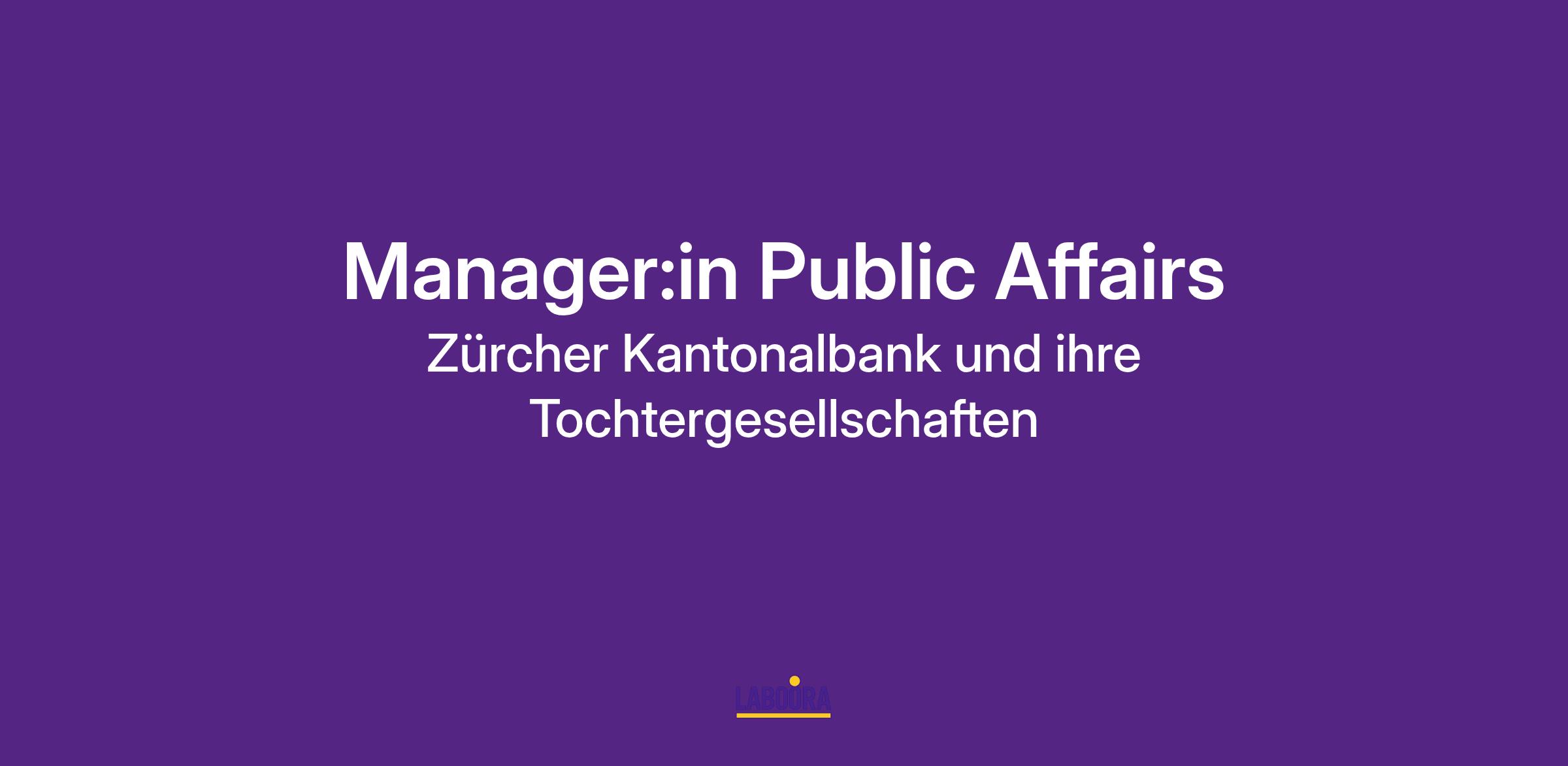 Ein positives Umfeld für die Geschäftstätigkeit der Zürcher Kantonalbank schaffen und ihre Reputation weiter stärken – das ist die Aufgabe der Fachstelle Public Affairs. Mit ihren Aktivitäten und Themen prägt sie den Dialog der zweitgrössten Universalbank der Schweiz mit ihren politischen Anspruchsgruppen auf Kantons- und Bundesebene. Public Affairs ist Teil des Bereichs Marketing und Kommunikation, der organisatorisch dem Vorsitzenden der Generaldirektion unterstellt ist.