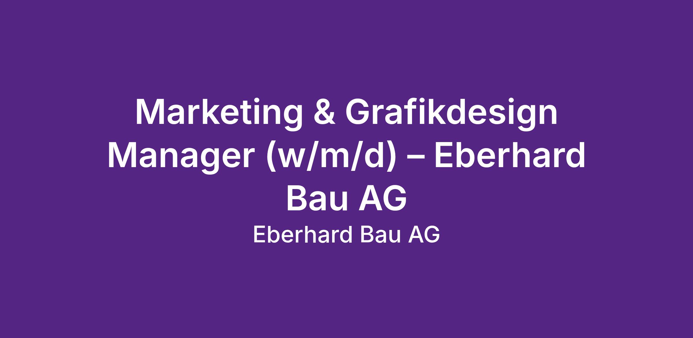 Marketing & Grafikdesign Manager (w/m/d) – Eberhard Bau AG