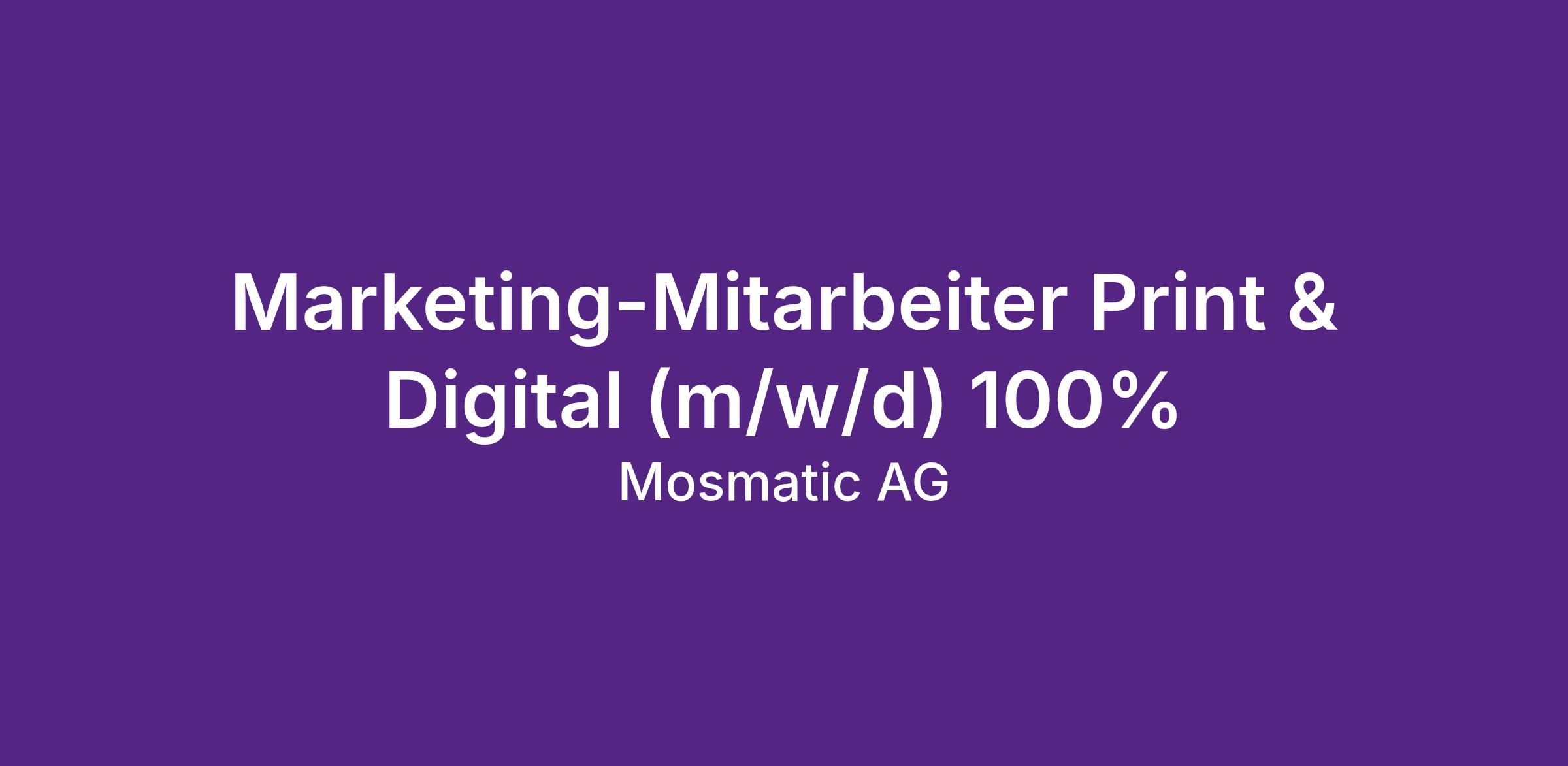 Marketing-Mitarbeiter Print & Digital (m/w/d) 100%