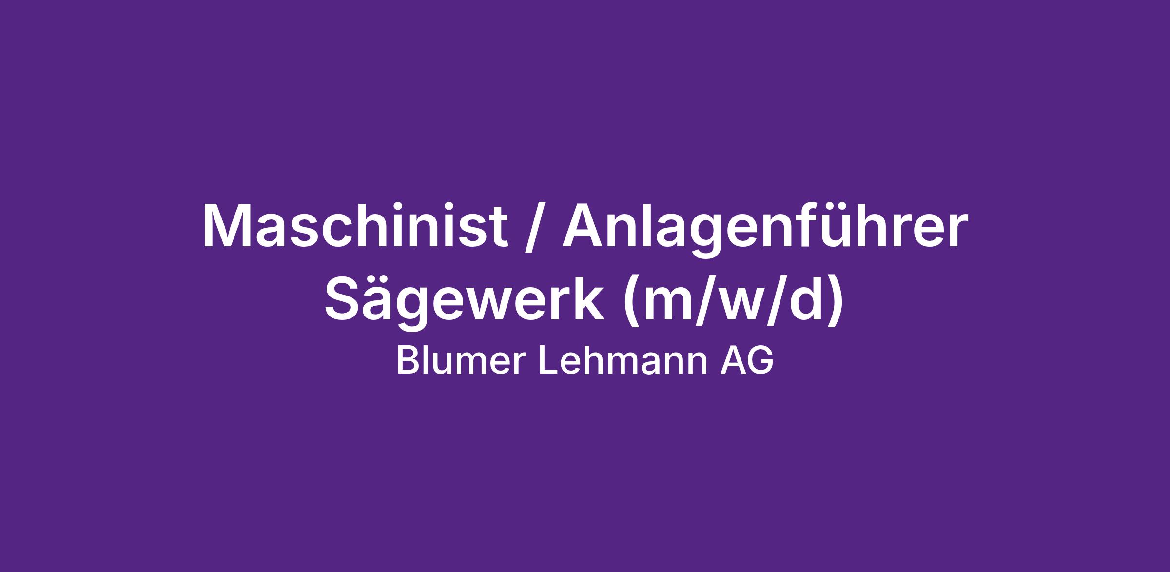 Maschinist / Anlagenführer Sägewerk (m/w/d)