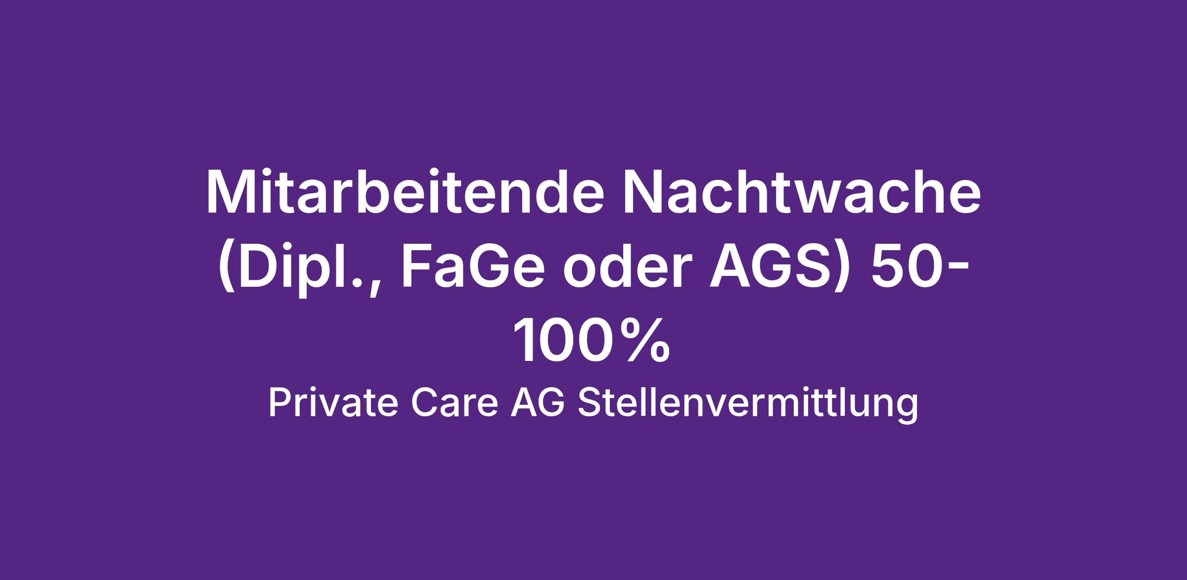 Die private Care AG ist ein dynamisches, zukunftsorientiertes Unternehmen, welches private Pflegedienstleistungen in den Kantonen Aargau, Zürich, Solothurn und Schaffhausen anbietet sowie spezialisierte Fachkräfte aus Pflege und Gesundheitswesen in der deutschsprachigen Schweiz vermittelt.