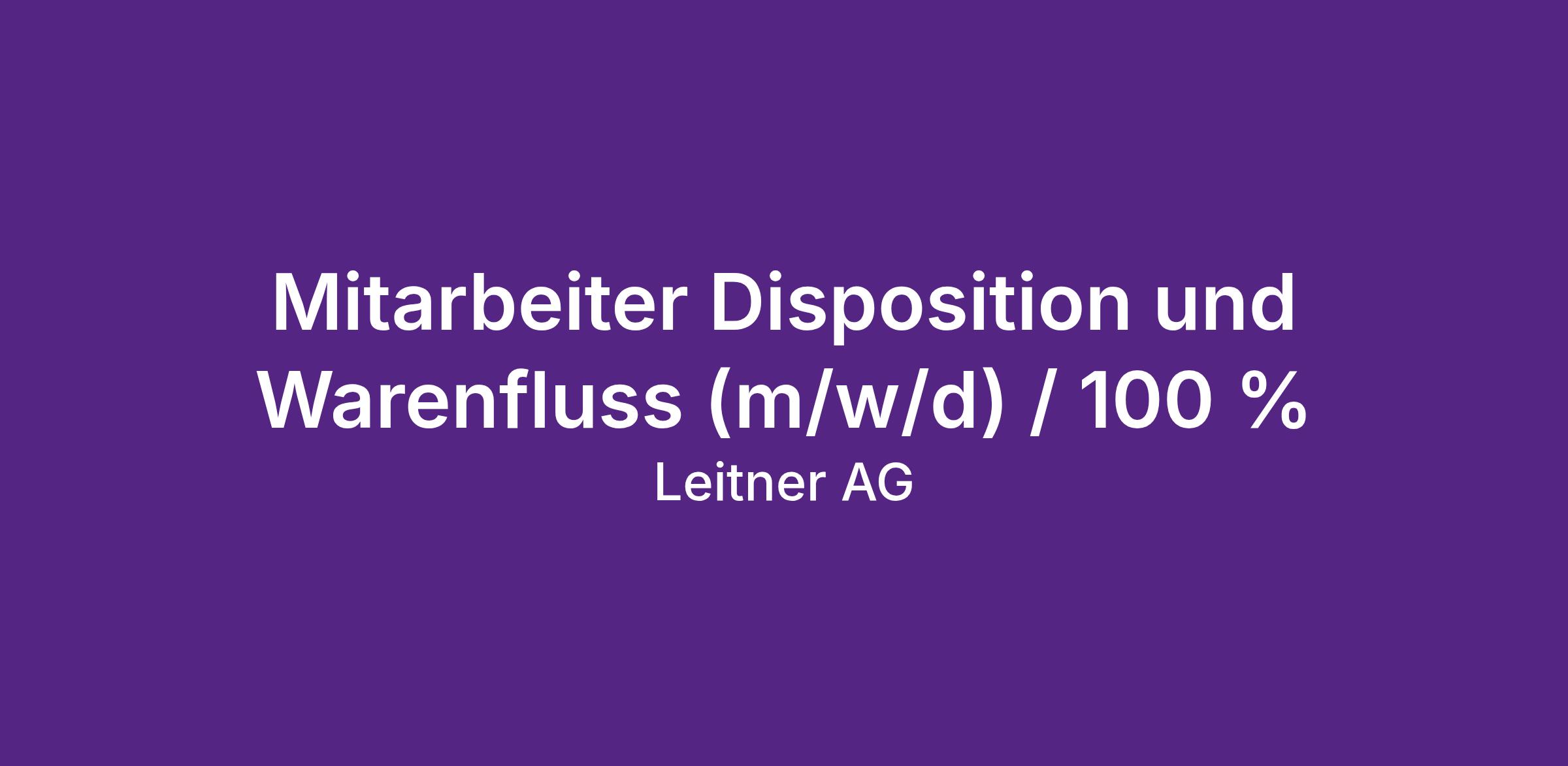 Mitarbeiter Disposition und Warenfluss (m/w/d) / 100 %