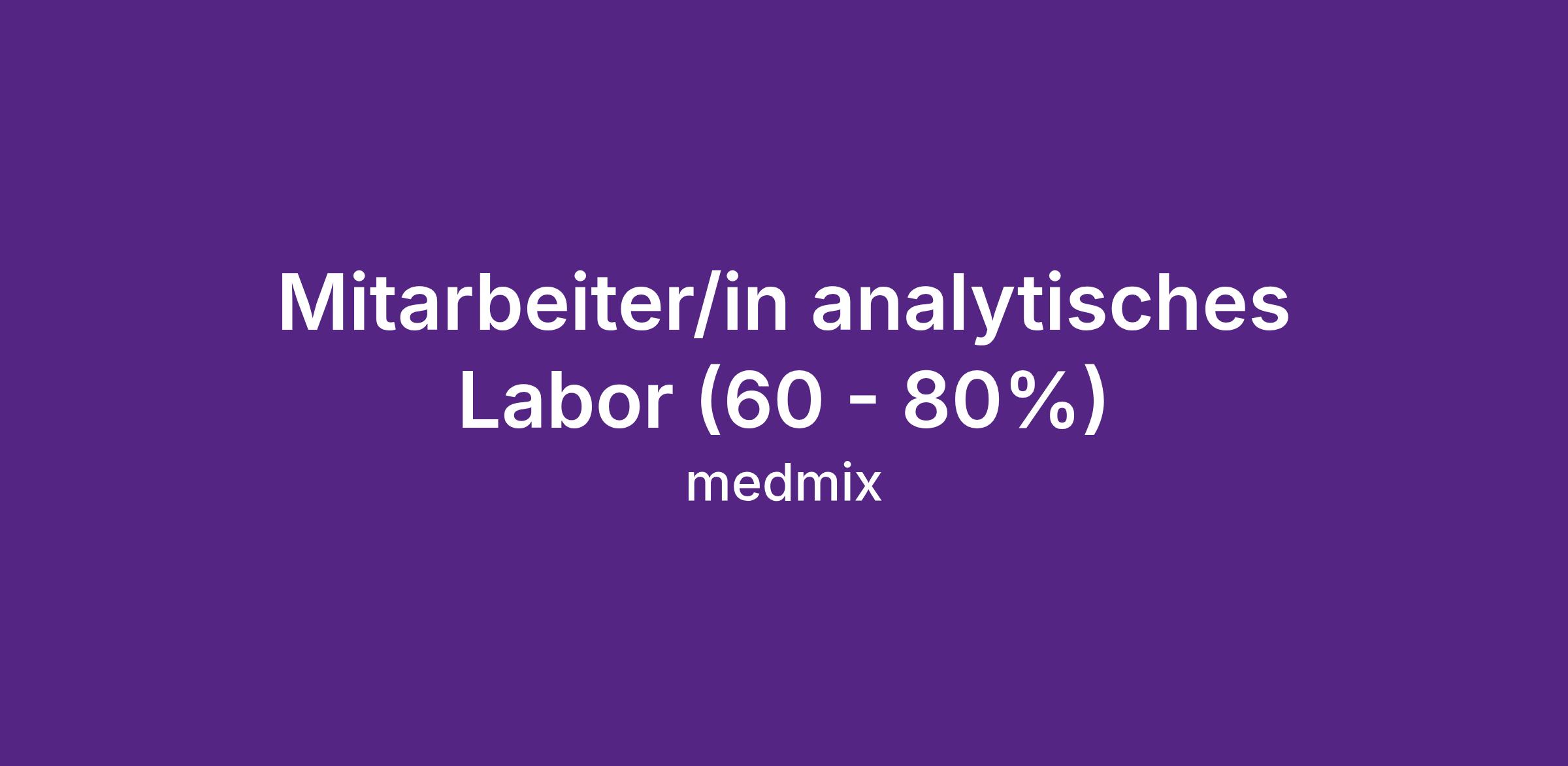Wir suchen für unser Team im analytischen Labor eine/n Mitarbeiter/in als tatkräftige Unterstützung. Dieser Job ist in Teilzeit mit einer Auslastung von 60 - 80%. Wir freuen uns auf Ihre Bewerbung!