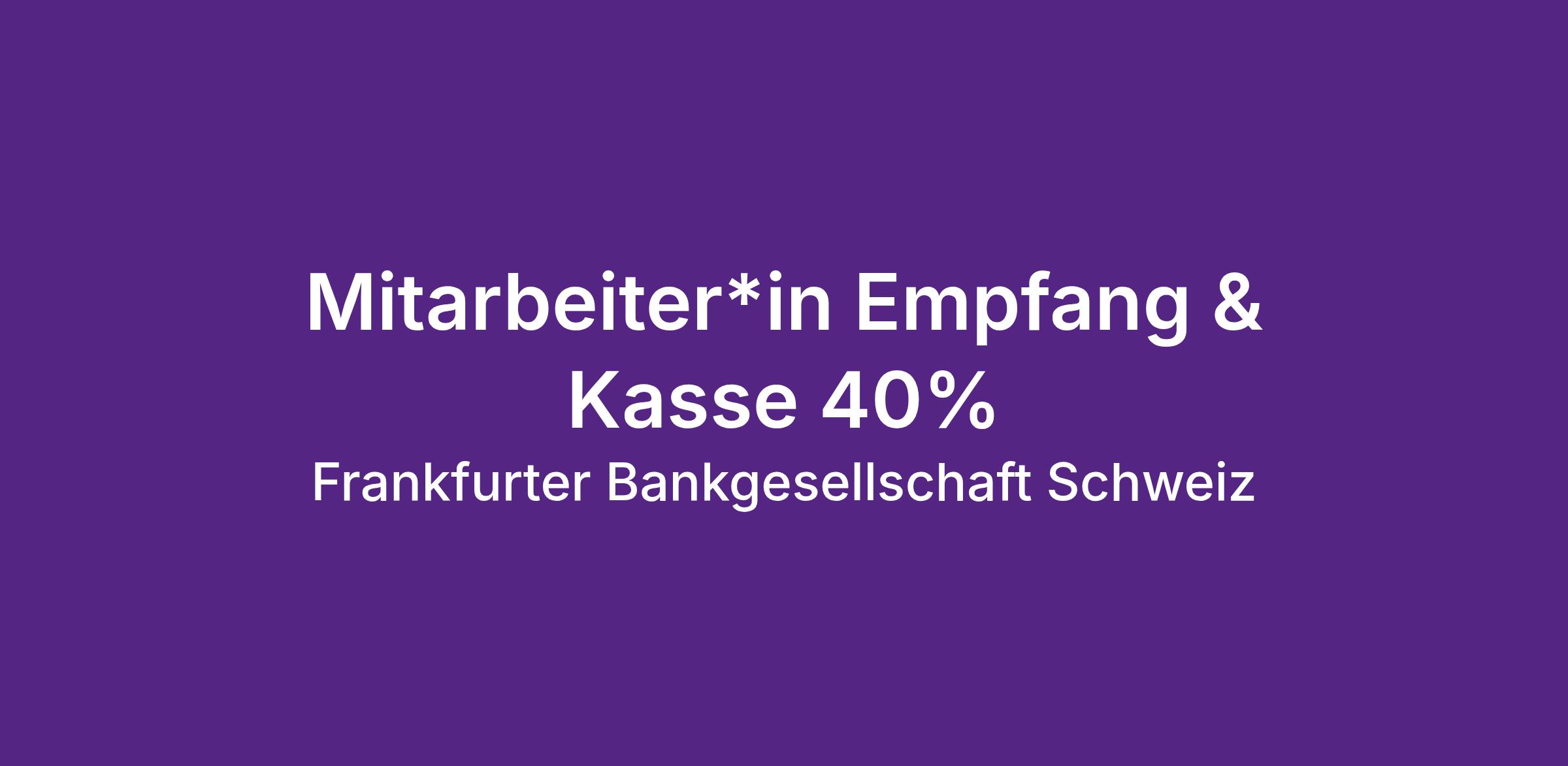 Die Frankfurter Bankgesellschaft Gruppe ist die Privatbank der Sparkassen-Finanzgruppe und kooperiert mit über 83 Prozent der deutschen Sparkassen. Das Kerngeschäft ist individuelles Wealth Management für vermögende Privatpersonen, Unternehmerinnen und Unternehmer. Die Frankfurter Bankgesellschaft Holding AG steuert die operativen Gesellschaften: die Privatbanken in der Schweiz und in Deutschland, ein Multi-Family-Office sowie die Mehrheitsbeteiligung IMAP M&A Consultants AG. Die Frankfurter Bankgesellschaft Gruppe gehört zu den leistungs- und wachstumsstärksten Privatbanken am deutschen Markt, verwaltet aktuell rund 23 Mrd. Euro und wurde wiederholt als einer der besten Wealth Manager im deutschsprachigen Raum ausgezeichnet. Möglich machen das unsere gruppenweit rund 400 motivierten Mitarbeitenden – sie füllen die Betreuungsphilosophie «Eine Spur persönlicher» täglich mit Leben. Schreiben Sie mit uns am nächsten Kapitel dieser Erfolgsgeschichte!