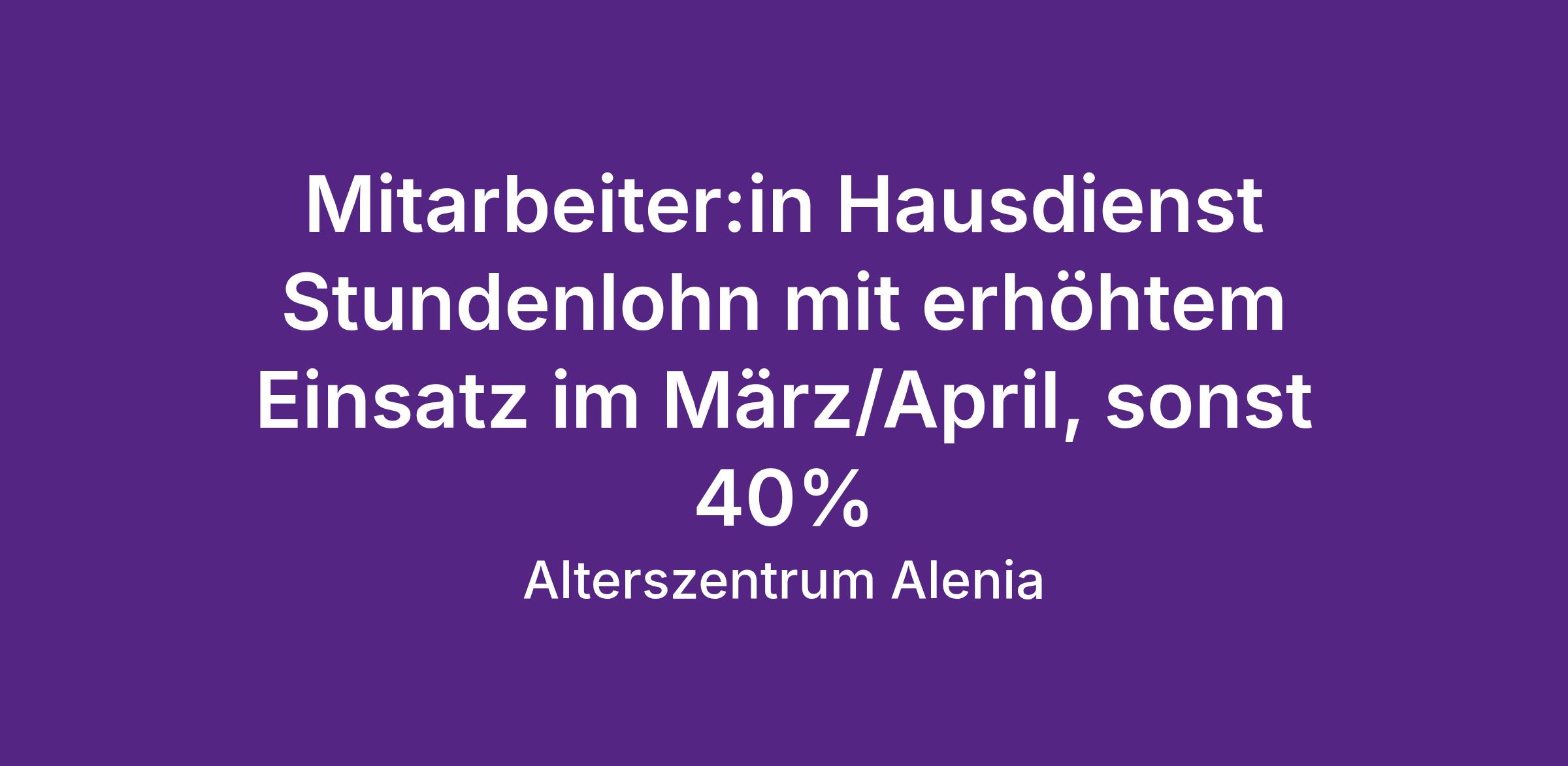 Wir suchen per sofort oder nach Vereinbarung ein:e Mitarbeiter:in Hausdienst Stundenlohn (ca. 40% mit erhöhtem Einsatz im März/April)