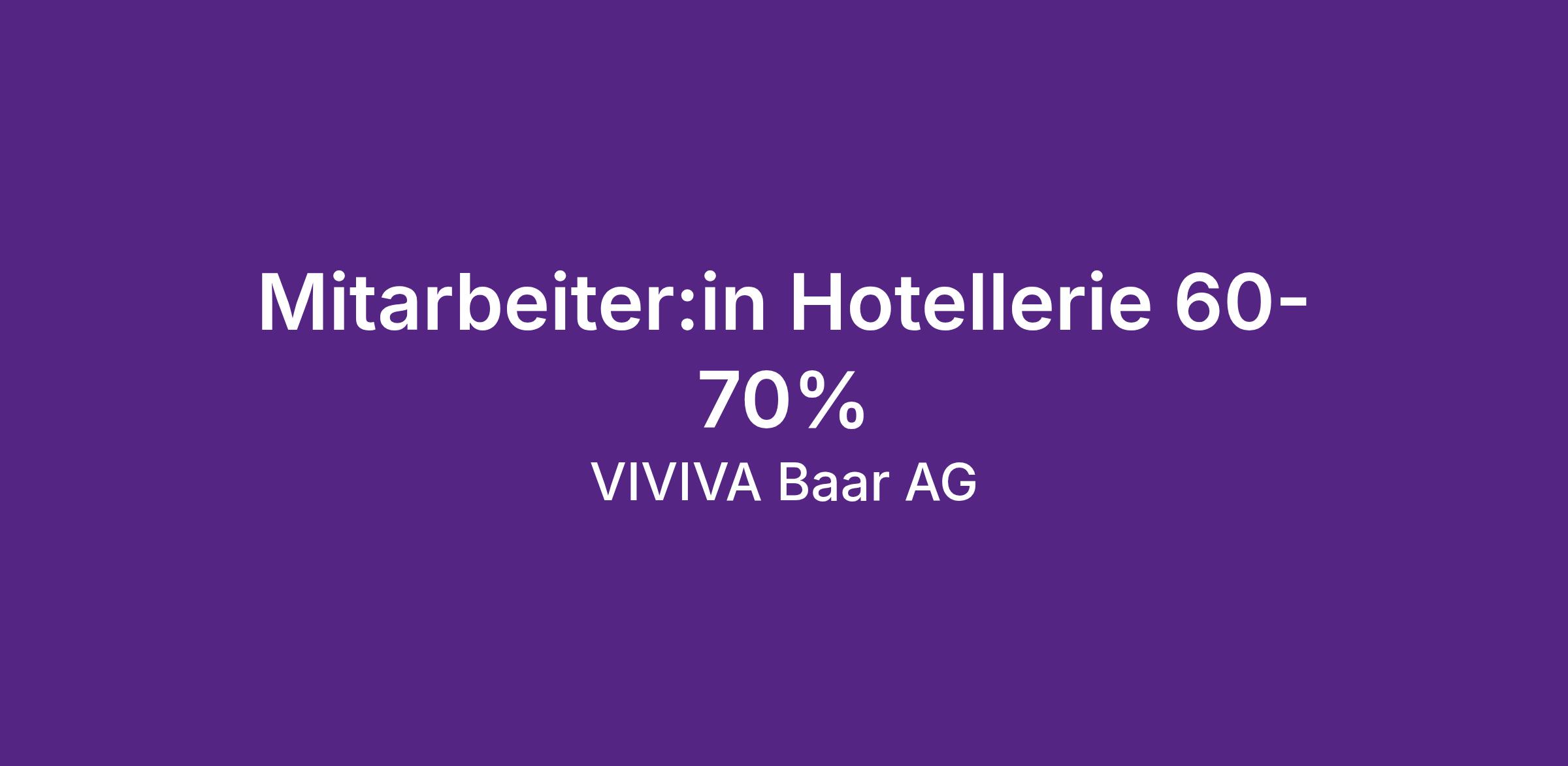 VIVIVA Baar ist das Kompetenzzentrum für Wohnen und die ganzheitliche Versorgung im Alter sowie für kulinarisch-gesellschaftliche Erlebnisse im Bankett- und Restaurantbereich. Wir bieten Dir ein respektvolles, motivierendes Arbeitsklima, in dem das Miteinander zählt. Für unsere Mitarbeiter:innen engagieren wir uns und gehen individuell und lösungsorientiert auch auf Deine Bedürfnisse ein.