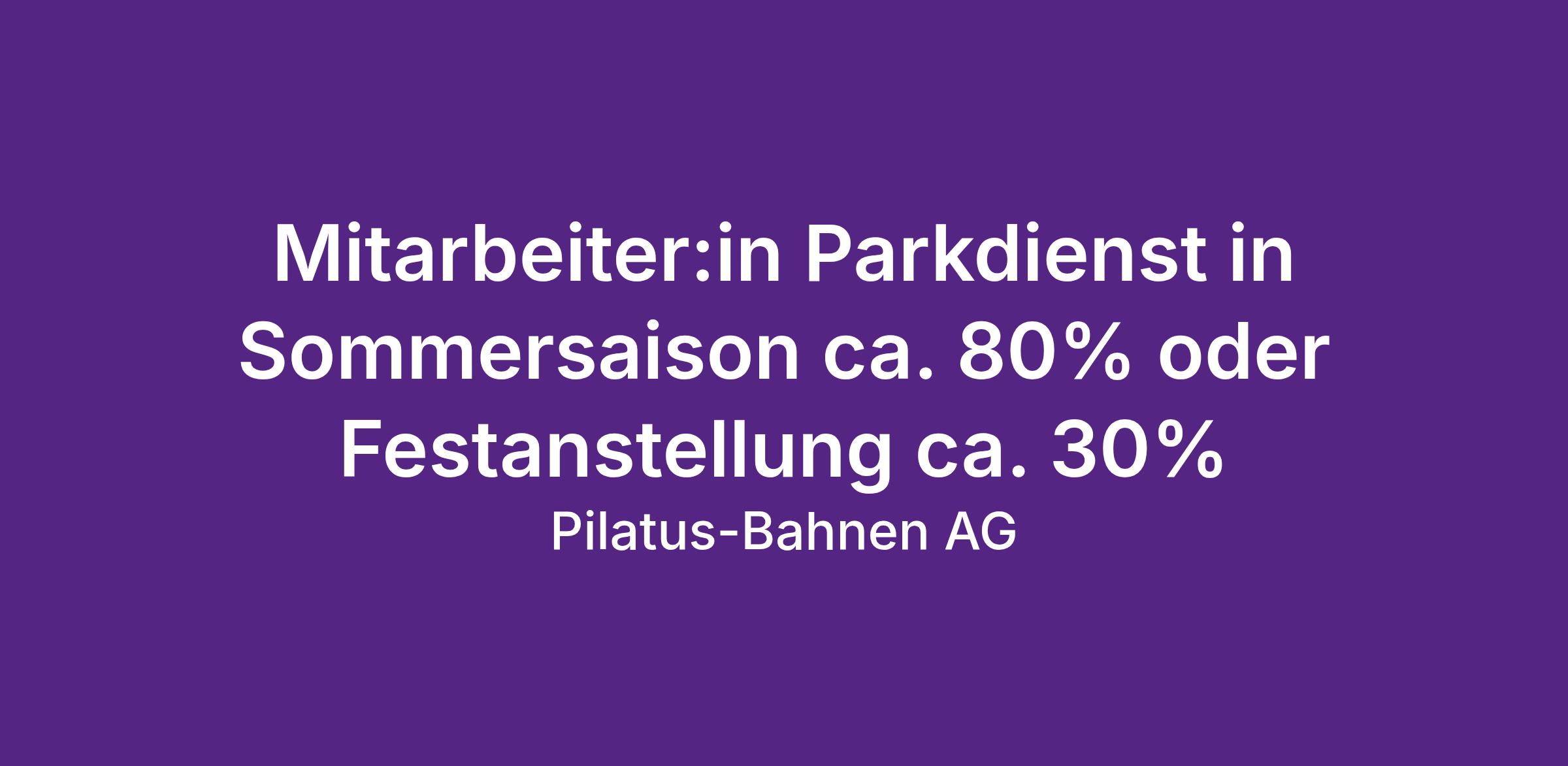 Die Pilatus-Bahnen AG ist eines der erfolgreichsten touristischen Unternehmen der Schweiz und bietet ein vielseitiges Freizeitangebot am Pilatus. 2 Seilbahnen, 2 Hotels, 5 Restaurants, die steilste Zahnradbahn der Welt und der grösste Seilpark der Zentralschweiz versprechen spannende Ausflugserlebnisse. Aussergewöhnliche Seminar- und Bankettmöglichkeiten ermöglichen bleibende Events. In der Hauptsaison setzen sich über 250 Mitarbeitende mit viel Begeisterung für die nationalen und internationalen Gäste am Pilatus ein und ermöglichen spannende Naturerlebnisse.