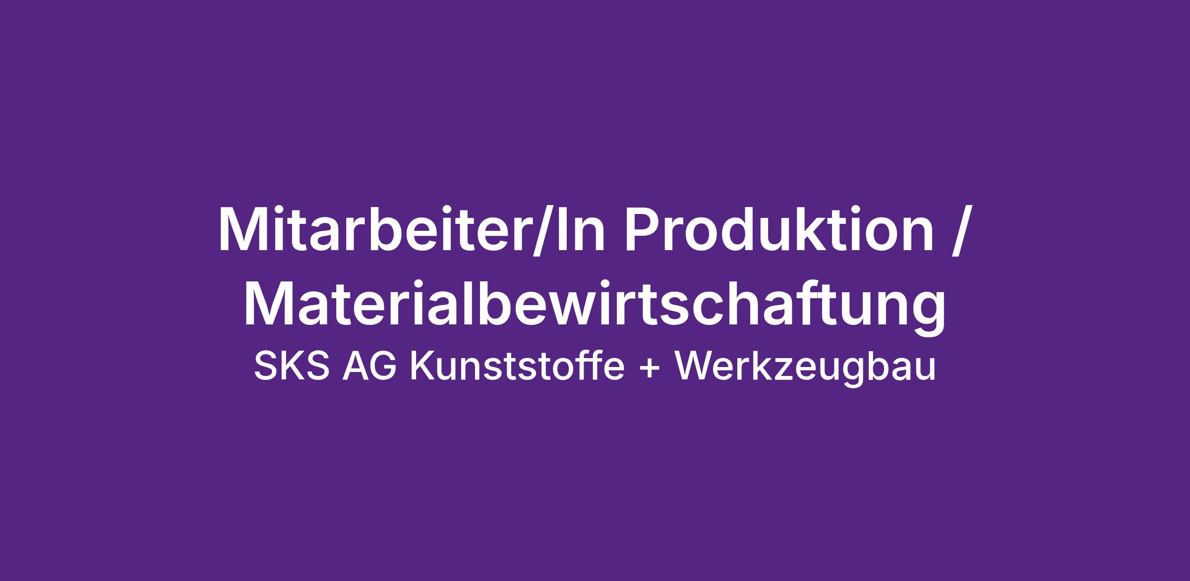 Wir sind ein inhabergeführtes Schweizer Familienunternehmen, das seit 1981 im Kundenauftrag Kunststoffteile im Spritzgussverfahren entwickelt, produziert und montiert. Vielseitigkeit bei individuellen Kundenlösungen, Präzision in der Werkzeugentwicklung, Effizienz in der Serienproduktion und Flexibilität in der Baugruppen-Montage sind unsere Stärken. Das SKS-Team besteht aus rund 100 Mitarbeitenden.