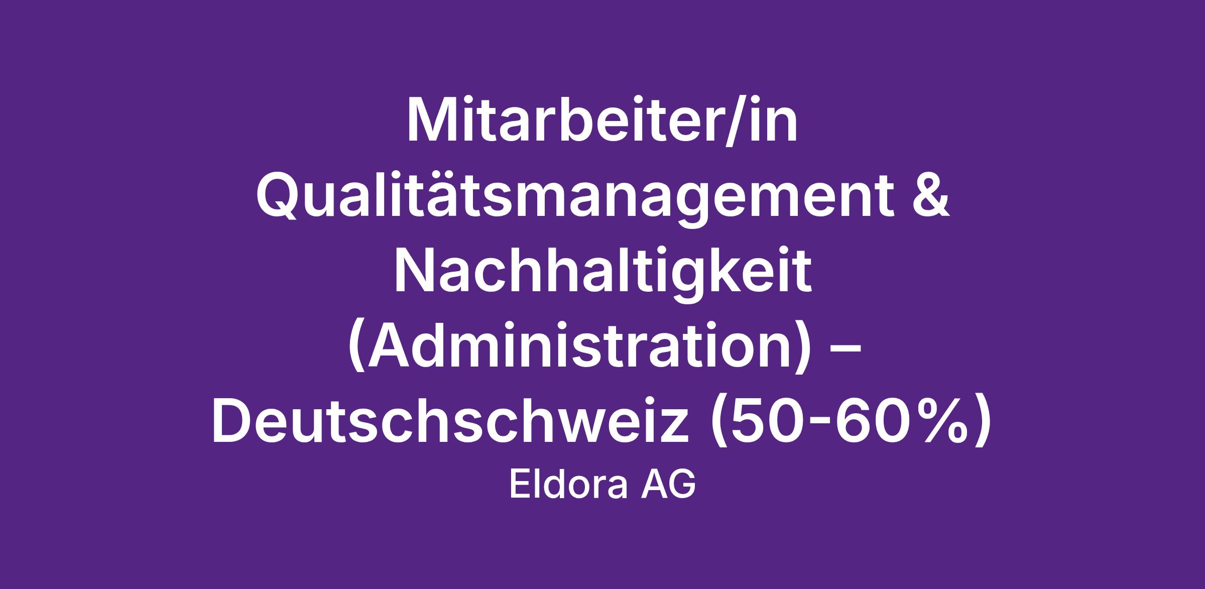 Mitarbeiter/in Qualitätsmanagement & Nachhaltigkeit (Administration) – Deutschschweiz (50-60%)