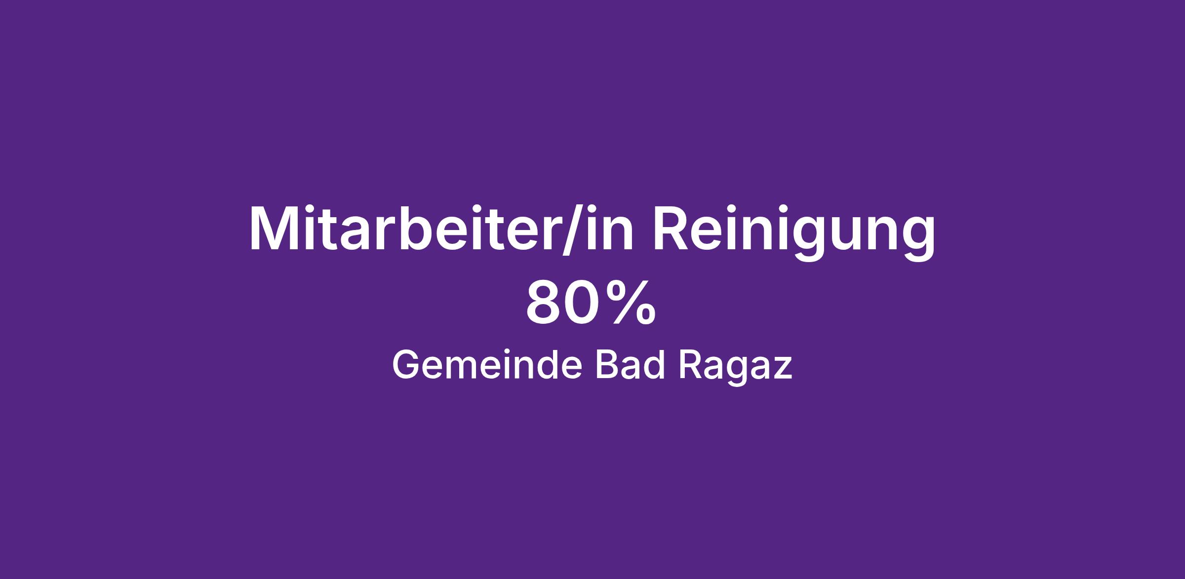 Die Gemeinde Bad Ragaz ist ein bedeutender Dienstleistungsbetrieb in einem attraktiven Wohn-, Arbeits- und Tourismusort mit guten Perspektiven. Im Rahmen einer Nachfolgeregelung suchen wir für die Wochen- und Unterhaltsreinigung in unserem Schulhaus Kleinfeld nach Vereinbarung eine/n