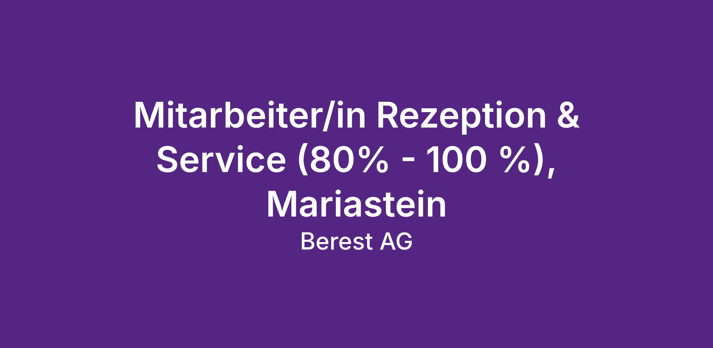 Mitarbeiter/in Rezeption & Service (80% - 100 %), Mariastein