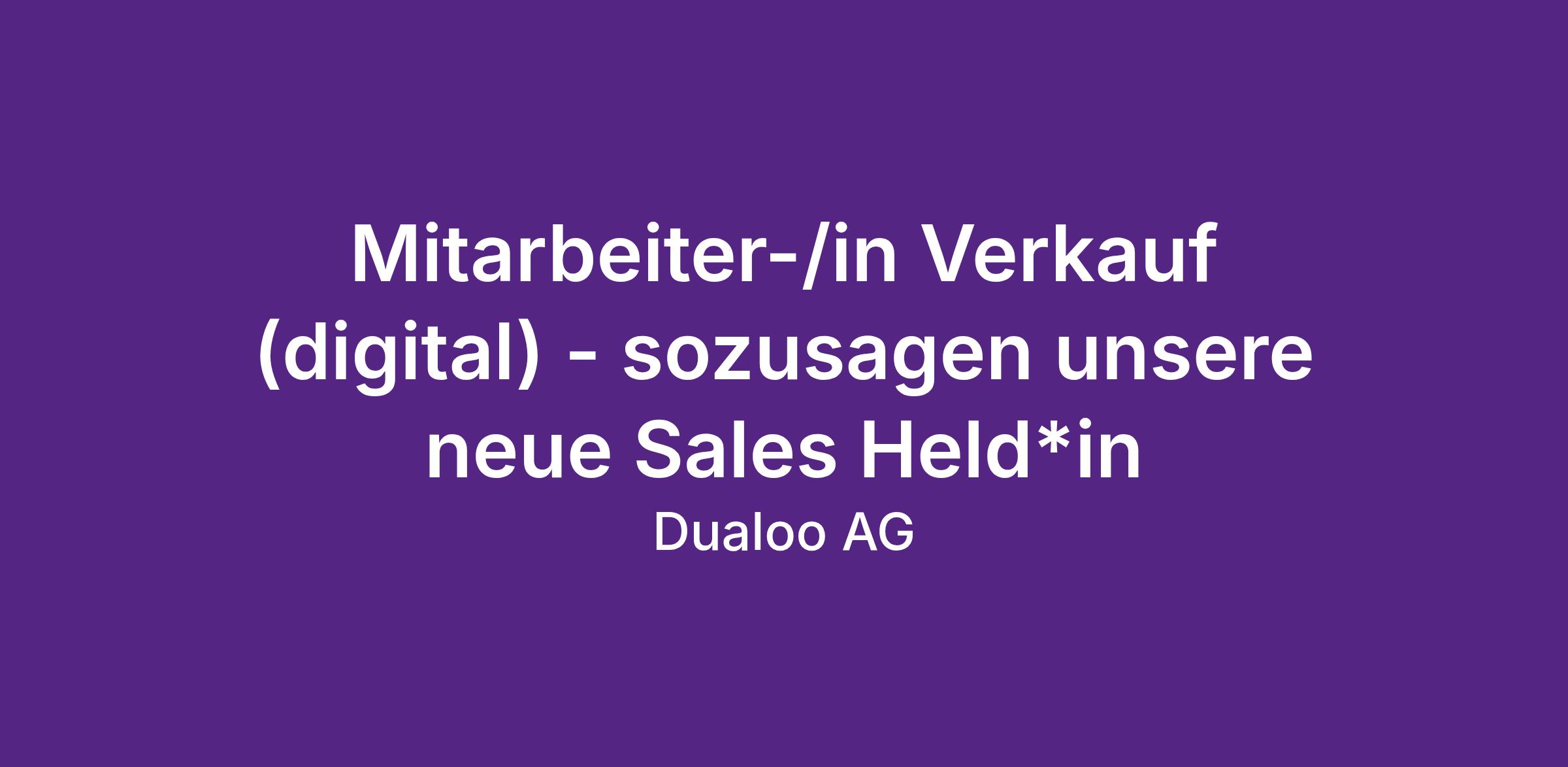 Dualoo wurde im 2015 gegründet - gemeinsamen wollen wir das Recruiting für KMUs vereinfachen. Für unser junges & dynamisches Sales-Team suchen wir Verstärkung für unseren Firmensitz ganz zentral in Basel.