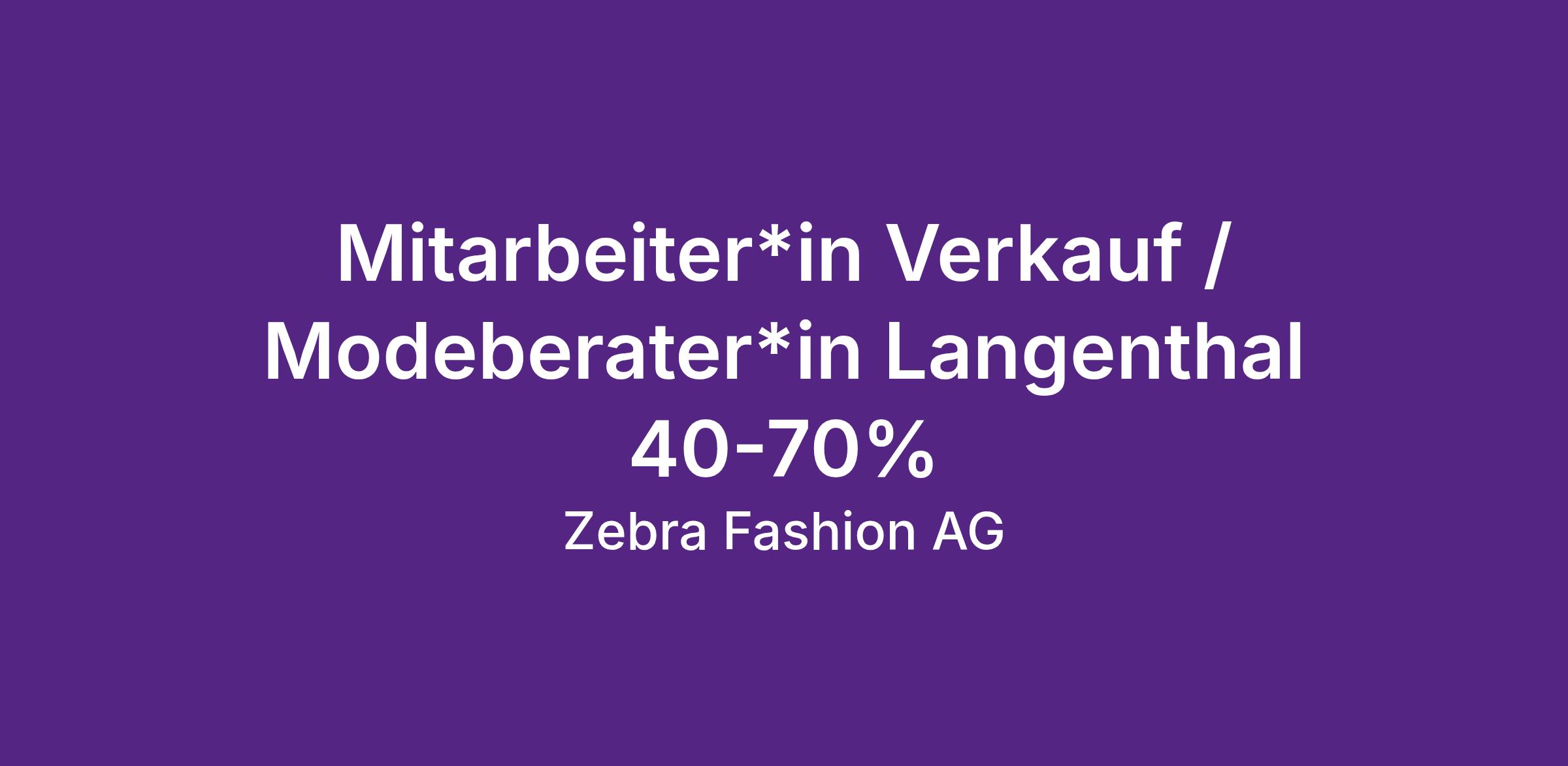 Die Zebra Fashion AG ist ein führendes Unternehmen im Einzelhandel und sucht derzeit eine*n erfahrene*n Mitarbeiter*in im Verkauf für eine Teilzeitstelle. Als Teil unseres Verkaufsteams werden Sie für die Beratung und Betreuung unserer Kunden zuständig sein und dazu beitragen, dass unsere Kunden ein unvergessliches Einkaufserlebnis haben. Wir suchen eine*n engagierte*n und motivierte*n Mitarbeiter*in, der*die bereits Berufserfahrung im Verkauf mitbringt und Freude am Umgang mit Kunden hat.