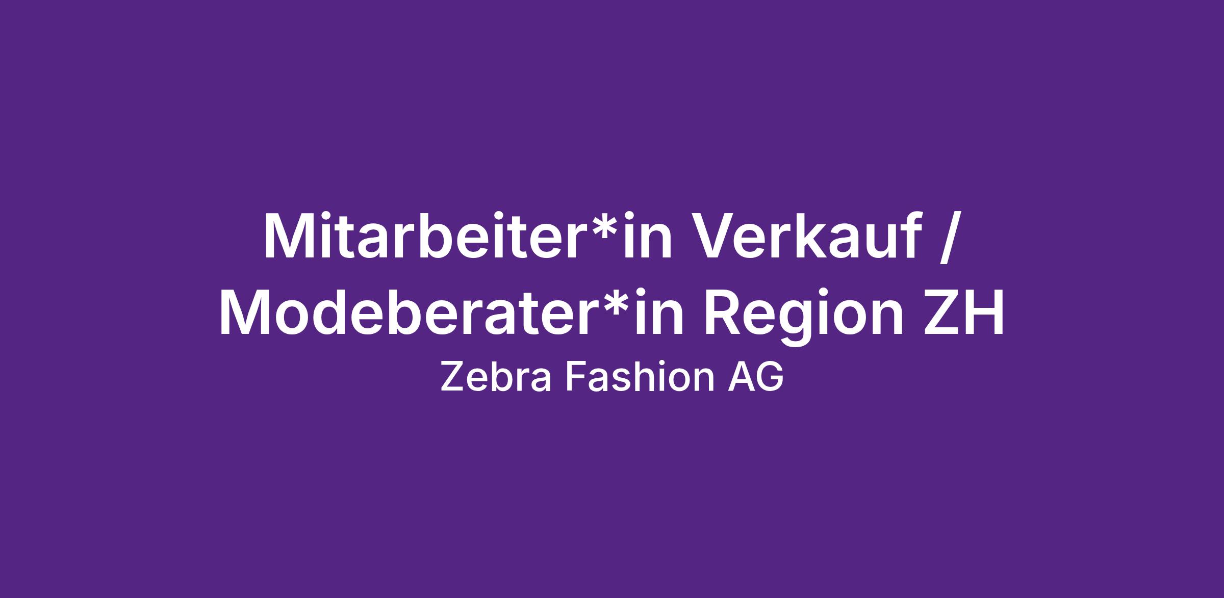 Die Zebra Fashion AG ist ein führendes Unternehmen im Detailhandel und sucht derzeit eine erfahrene Mitarbeiter*in im Verkauf für eine Teilzeitstelle. Als Teil unseres Verkaufsteams wirst du für die Beratung und Betreuung unserer Kunden zuständig sein und dazu beitragen, dass sie ein unvergessliches Einkaufserlebnis haben. Wir suchen eine engagierte und motivierte Mitarbeiter*in, der/die bereits Berufserfahrung im Verkauf mitbringt und Freude am Umgang mit Kunden hat.