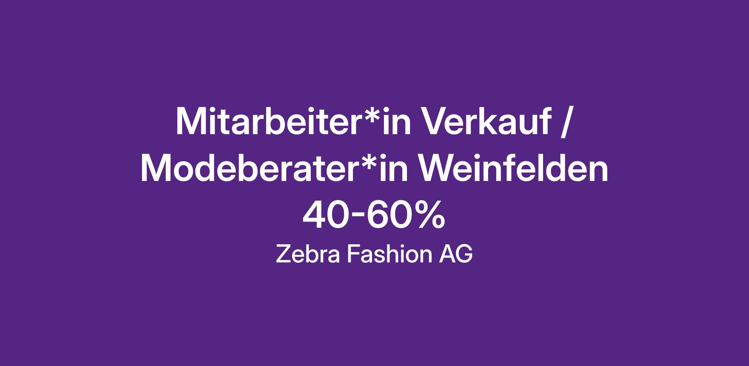 Die Zebra Fashion AG ist ein führendes Unternehmen im Detailhandel und sucht derzeit eine erfahrene Mitarbeiter*in im Verkauf für eine Teilzeitstelle. Als Teil unseres Verkaufsteams wirst du für die Beratung und Betreuung unserer Kunden zuständig sein und dazu beitragen, dass sie ein unvergessliches Einkaufserlebnis haben. Wir suchen eine engagierte und motivierte Mitarbeiter*in, der/die bereits Berufserfahrung im Verkauf mitbringt und Freude am Umgang mit Kunden hat.
