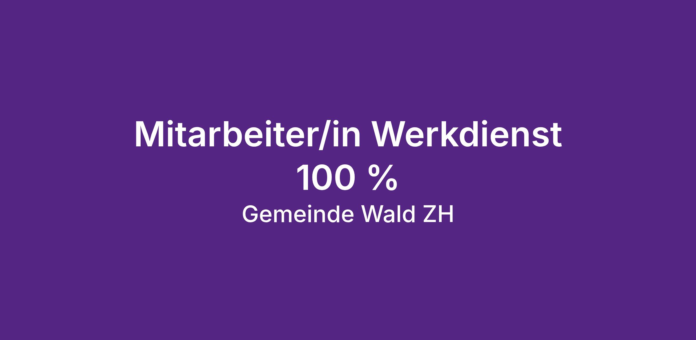 Unser Werkdienst erbringt wertvolle Dienstleistungen für die Infrastruktur und die gesamte Bevölkerung von Wald. Als Ergänzung unseres Teams suchen wir per 1. November 2025 oder nach Vereinbarung eine/n