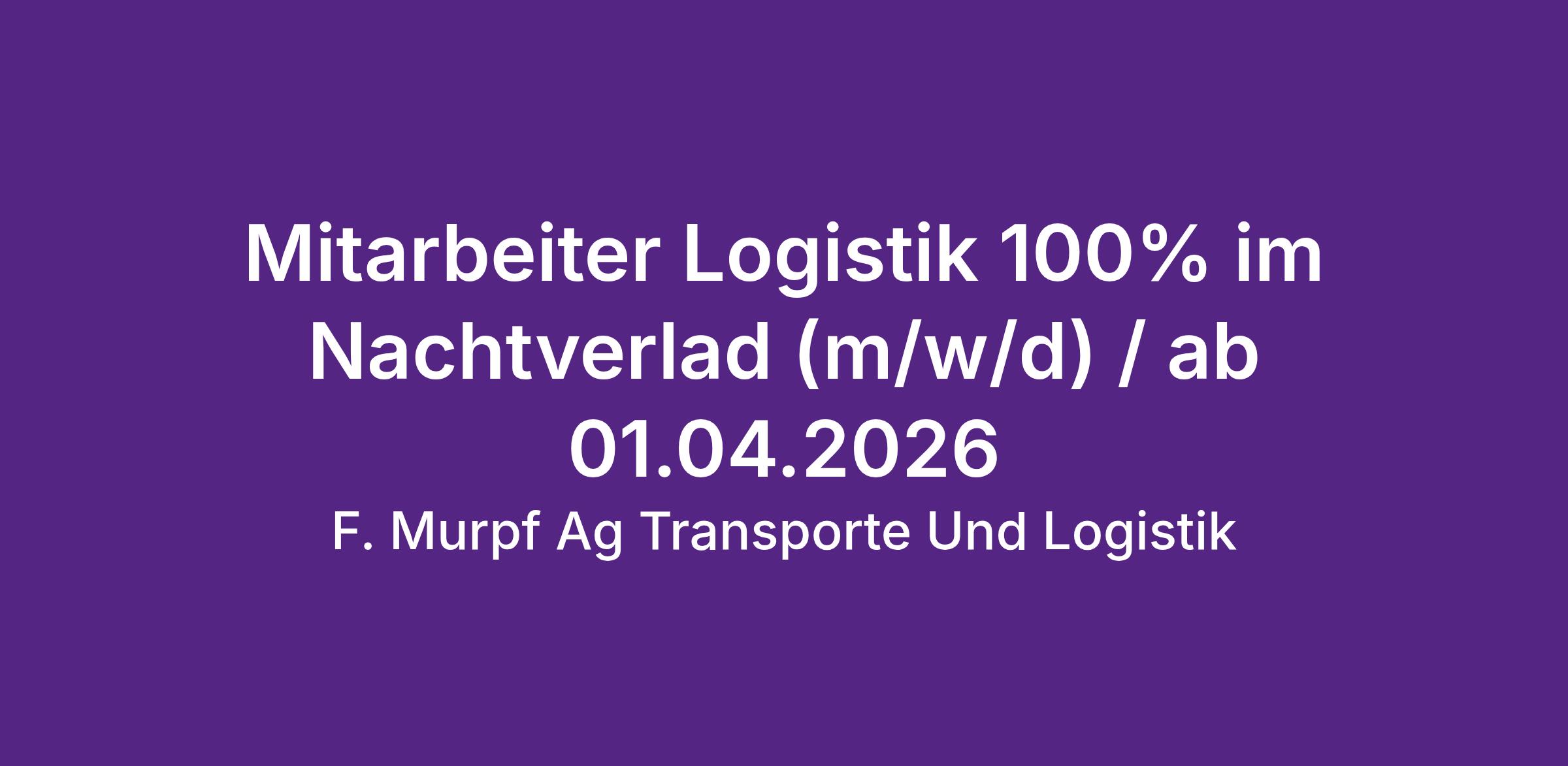 Mitarbeiter Logistik 100% im Nachtverlad (m/w/d) / ab 01.04.2026